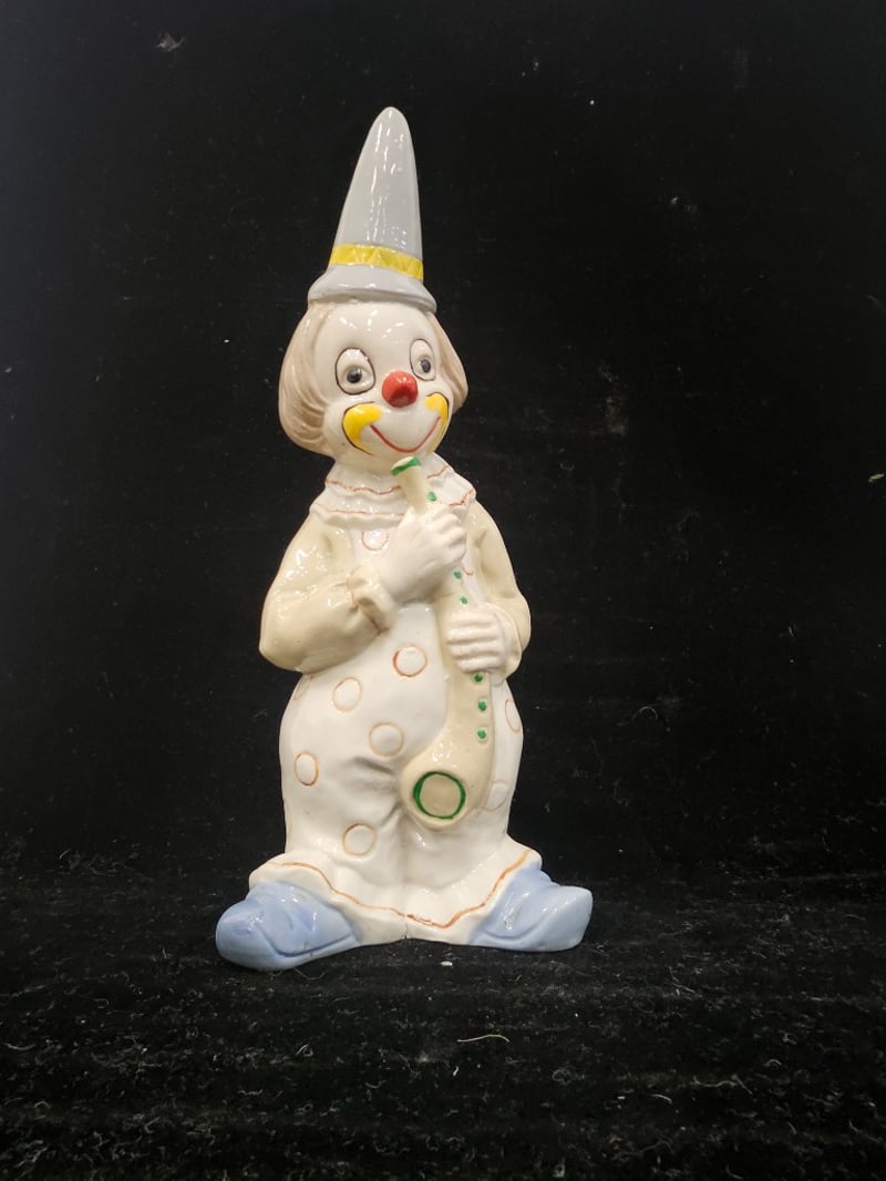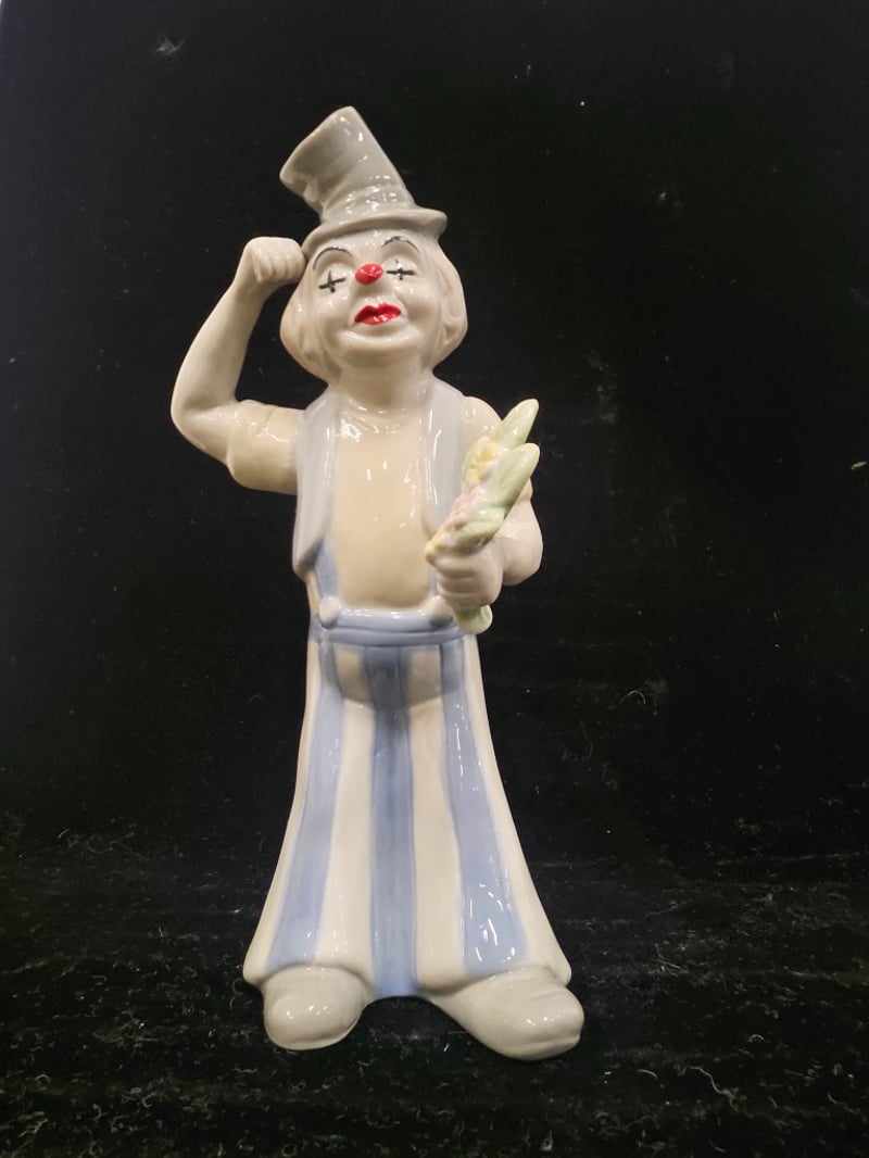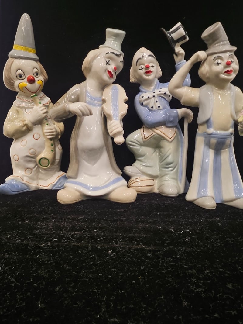4 PORCELAIN CLOWN STATUES Item Size: Height: 26cm, Width: 17cm, Depth: 21cm, Weight: 3Kg Statue Heights Range From 26Cm - 23Cm Condition: Good - Refer To Images 587964+13