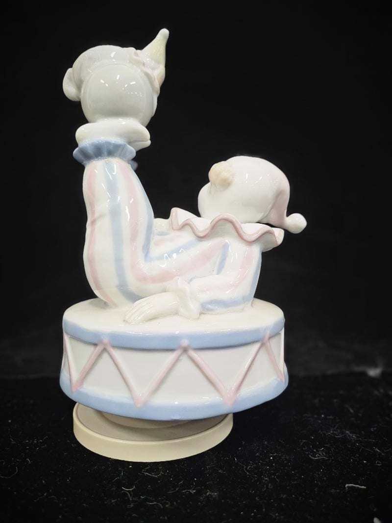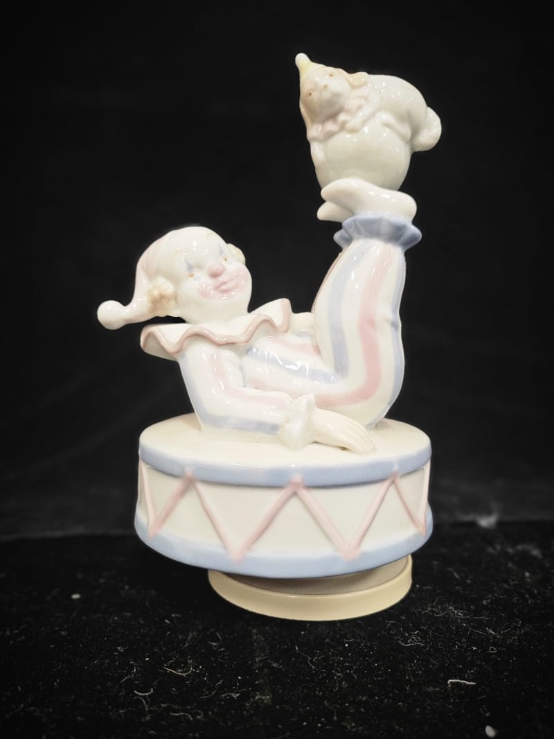 PORCELAIN CLOWN WITH WORKING MUSIC BOX Item Size: Height: 20cm, Width: 13cm, Depth: 10cm, Weight: 2Kg Condition: Good - Refer To Images 587964+19