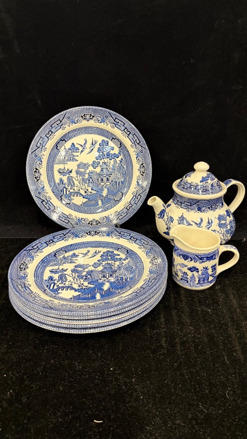 BLUE WILLOW PATTERN CERAMIC TEA SERVICE Item Size: Height: 32cm, Width: 26cm, Depth: 32cm Condition: Good - Refer To Images 587964+21