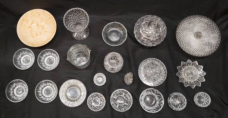 COLLECTION OF GLASSWARE, INCLUDING PLATES, BOWLS AND JARS 585099+1
