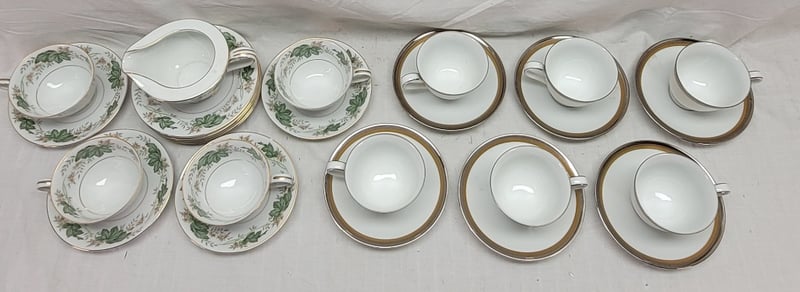 TWO SETS OF NORITAKE CHINA CUP AND SAUCER SETSIncludes:Four Piece Noritake China Daphne Set With Five Side Plates, Milk JugSix Piece Noritake China Compton SetCondition: Good - Refer To Images582891+20