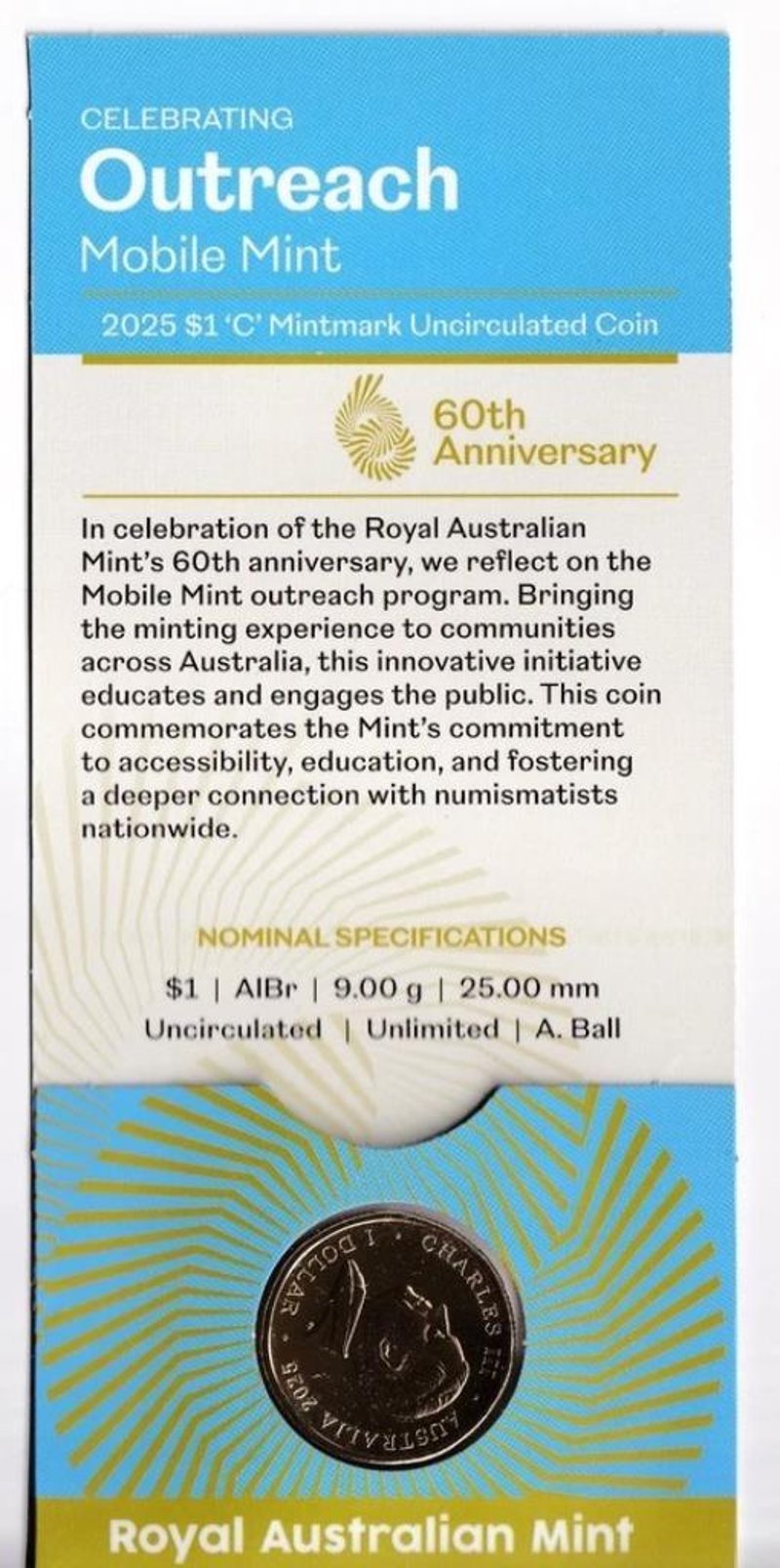 AUSTRALIAN: 2025 $1 60TH ANNIVERSARY ROYAL AUST. MINT C CANBERRA COIN