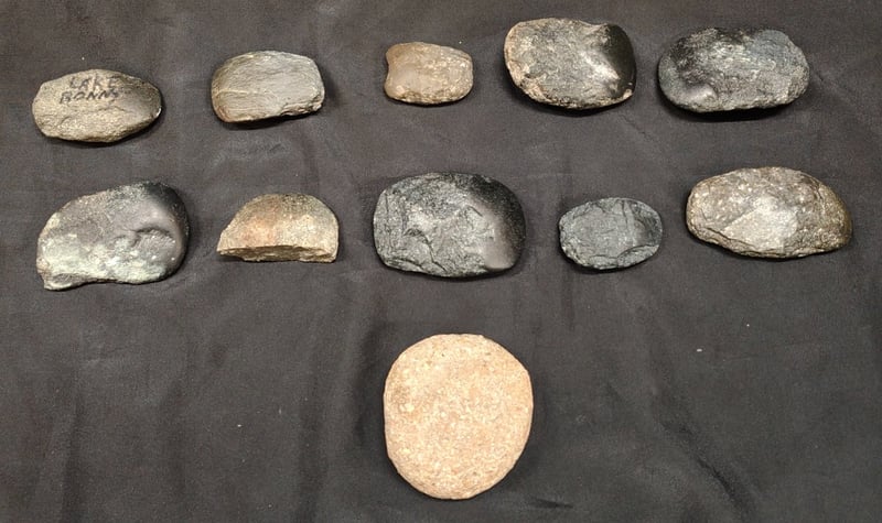 COLLECTION OF STONE AXES AND GRINDER Collection Contains 10 Stone Axes And One Stone Grinder Condition: Good - Refer To Images 585099+3