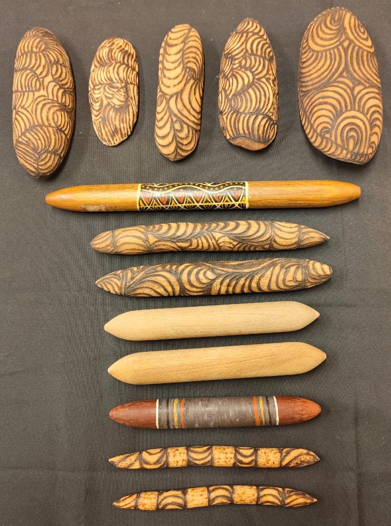 COLLECTION OF ABORIGINAL BOWLS AND CLAPPERS 585099+15