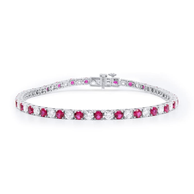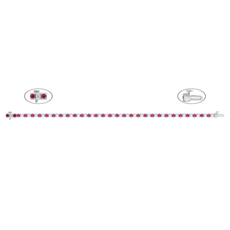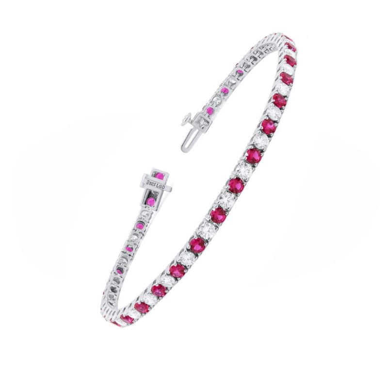 6.72 CARATS STERLING SILVER RHODIUM LAB GROWN DIAMOND & RUBY TENNIS BRACELET