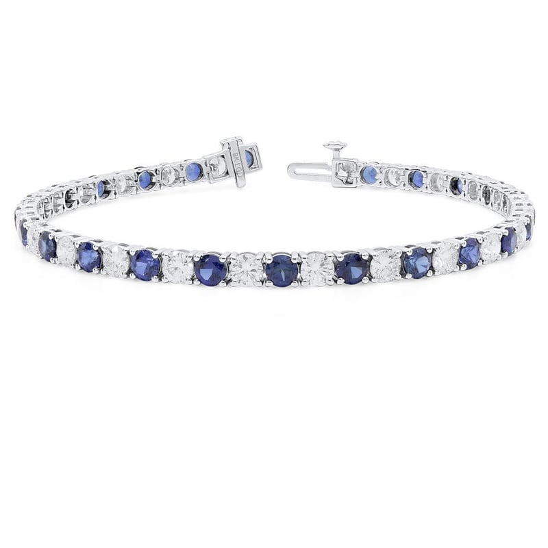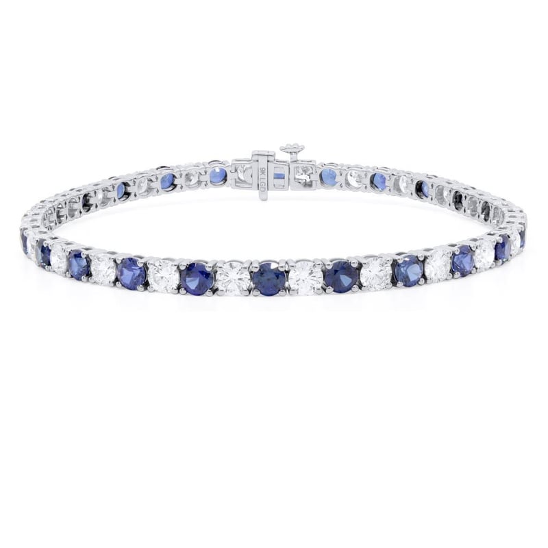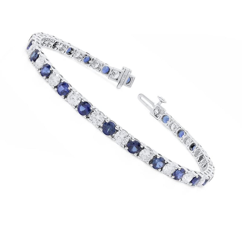 9.46 CARATS WHITE GOLD LAB GROWN DIAMOND & SAPPHIRE TENNIS BRACELET (Stamped 9K ) With A Box Clasp And Safety Latches. The Bracelet Is In A New Condition With A Polish Finish Featuring: Lab Grown Diamonds: 24 Claw Set Round Brilliant Cut Lab Grown Diamonds With A Total Weight Of 24 = 4.09 Carats The Colour Is F And The Clarity Is Vs Plus 24 Claw Set Round Lab Grown Sapphires With A Total Weight Of 24 = 5.37 Carats . Total Carat Weight Of The Lab Grown Diamonds And Sapphires = 9.46 Carats. Length Of The Bracelet: 18Cm Condition: Good - Refer Images 010217+7
