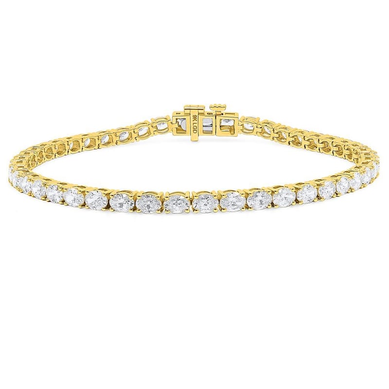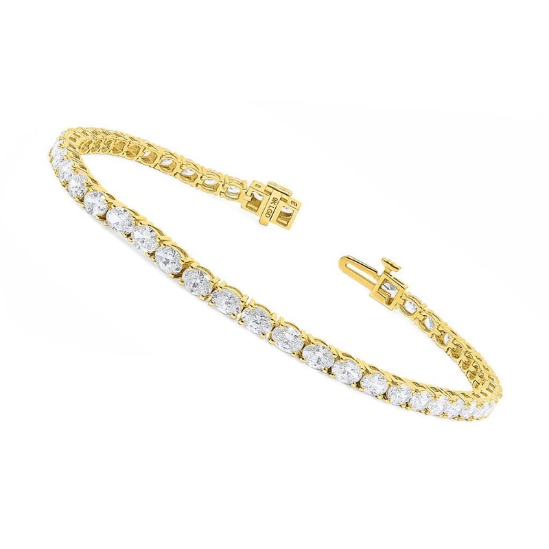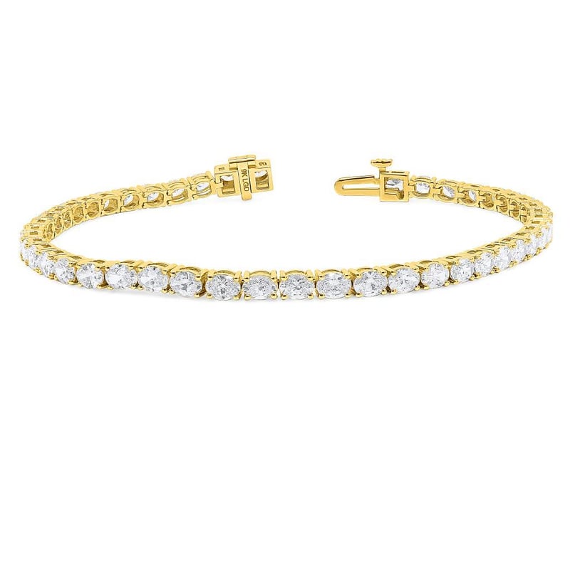 5.43 CARATS YELLOW GOLD OVAL CUT LAB GROWN DIAMOND TENNIS BRACELET (Stamped 9K) With A Box Clasp And Safety Latches. The Bracelet Is In A New Condition With A Polish Finish Featuring: Lab Grown Diamonds: 46 Claw Set Oval Cut Lab Grown Diamonds With A Total Stated Weight Of 46 =5.43 Carats. The Colour Is F And The Clarity Is Vs. Total Carat Weight Of The Lab Grown Diamonds: 5.43 Carats. Length Of The Bracelet: 18Cm Condition: Good - Refer Images 010217+11