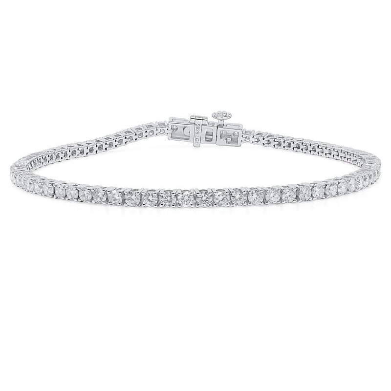 3.01 CARATS STERLING SILVER RHODIUM LAB GROWN DIAMOND TENNIS BRACELET (Stamped S925 Lgd ) With A Box Clasp And Safety Latches. The Bracelet Is In A New Condition With A Polish Finish Featuring: Lab Grown Diamonds: 77 Claw Set Round Brilliant Cut Lab Grown Diamonds With A Total Weight Of 77 = 3.01 Carats The Colour Is F And The Clarity Is Vs Total Carat Weight Of The Lab Grown Diamonds = 3.01 Carats. Length Of The Bracelet: 18Cm Condition: Good - Refer Images 010217+12
