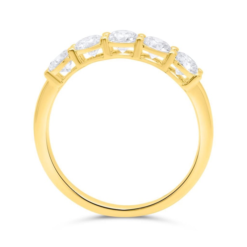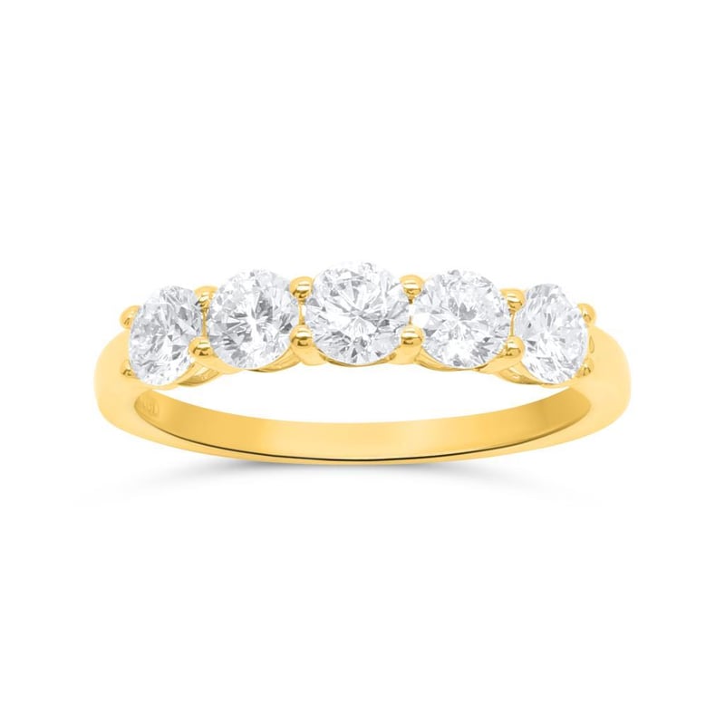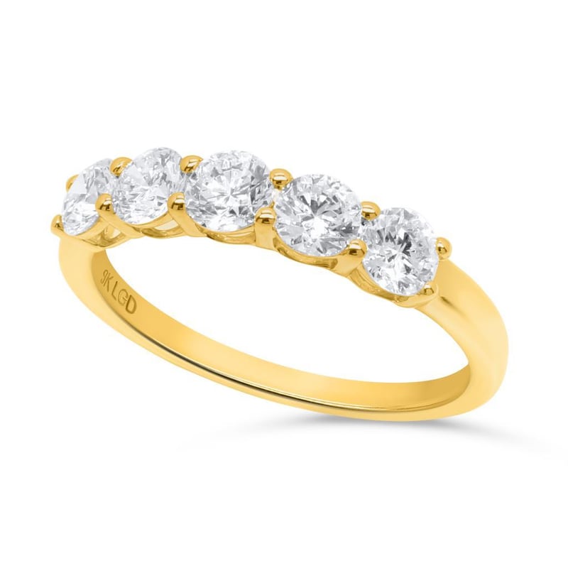 3/4 CARAT YELLOW GOLD LAB GROWN DIAMOND BAND ( Stamped 9K ) 5 Lab Grown Diamonds = 0.75 Carats Diamond Quality F/Vs Finger Size N Condition: Good - Refer Images 010217+21