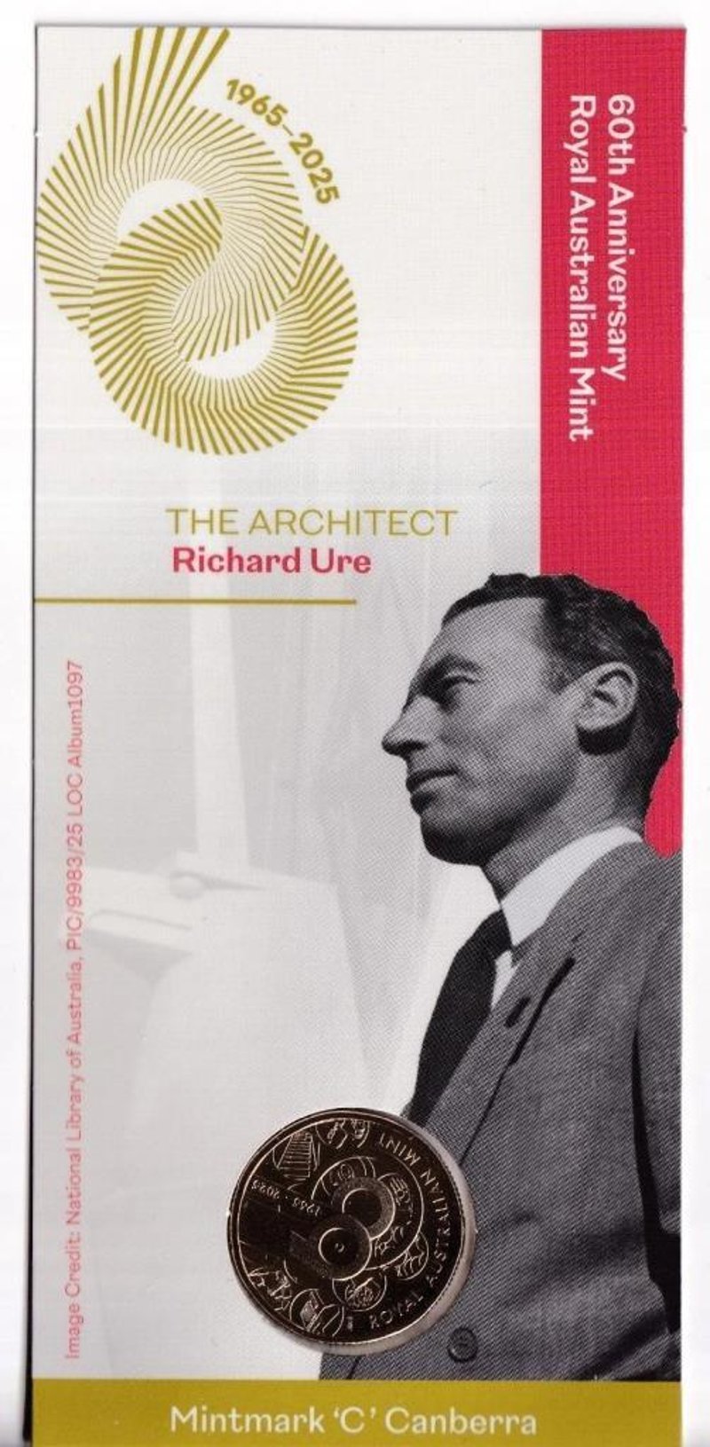 AUSTRALIAN: 2025 $1 60TH ANNIVERSARY ROYAL AUST. MINT C CANBERRA COIN-THE ARCHITECT - RICHARD URE