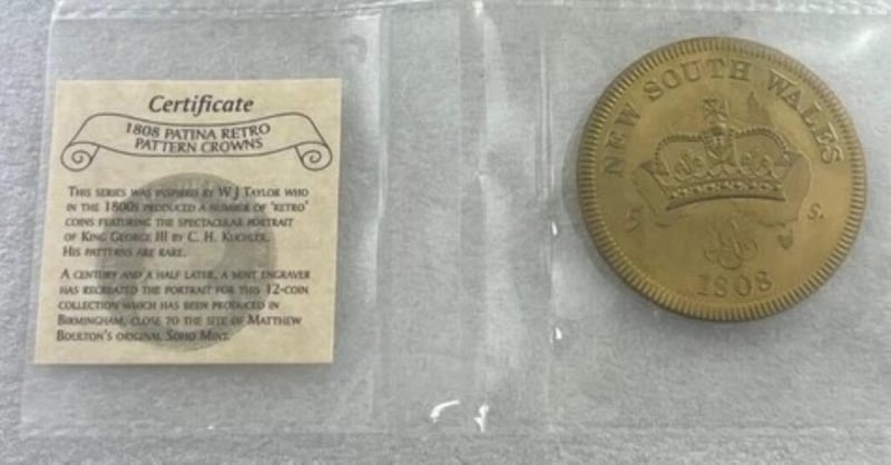 1808 NEW SOUTH WALES - GEORGE III RETRO PATTERN CROWNS - GOLDEN ALLOY 294179+24