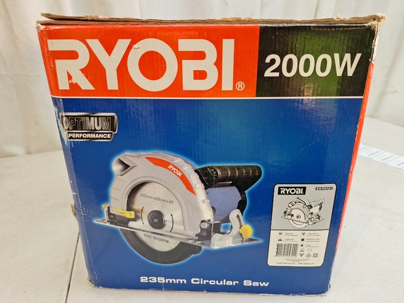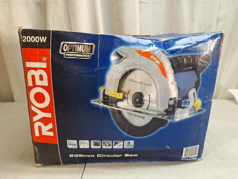 Ryobi Optimum Performance 235mm circular saw, 2000W power rating. Model ECS2323S