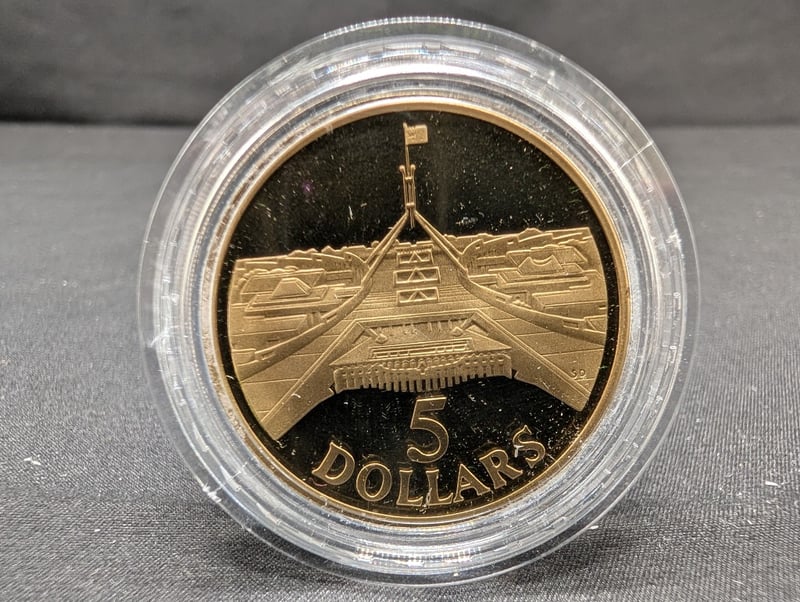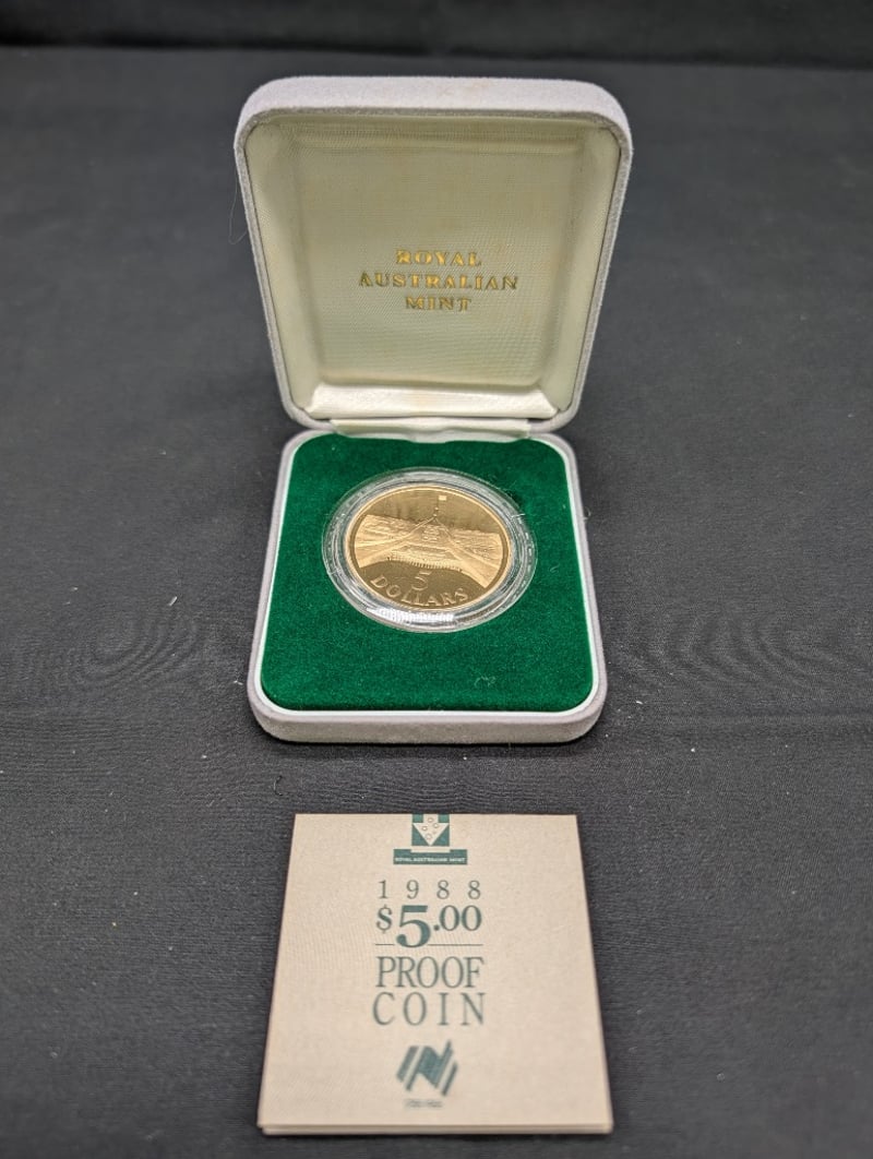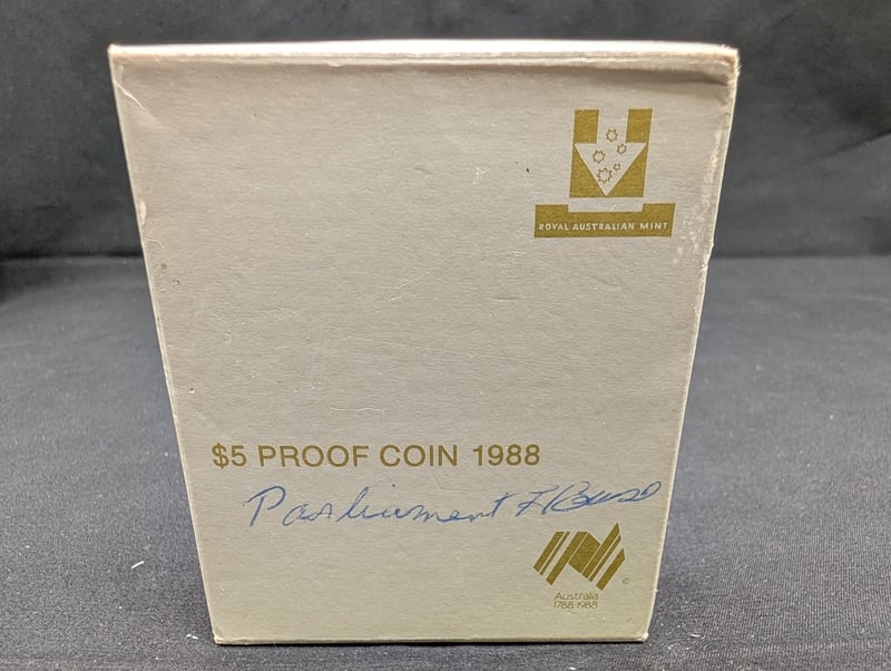 1988 PARLIAMENT HOUSE FIVE DOLLAR UNCIRCULATED COIN PROOF BOX Condition: Unc 584541+7