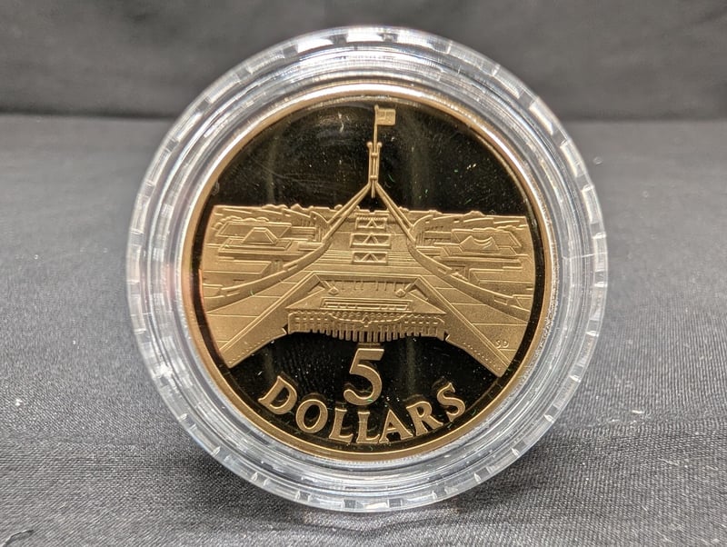1988 PARLIAMENT HOUSE FIVE DOLLAR UNCIRCULATED COIN PROOF BOX Condition: Unc 584541+8