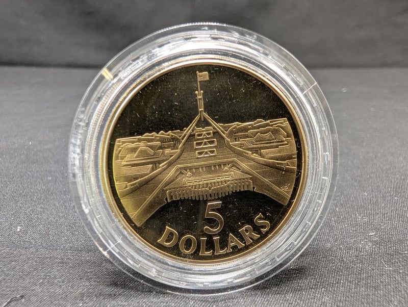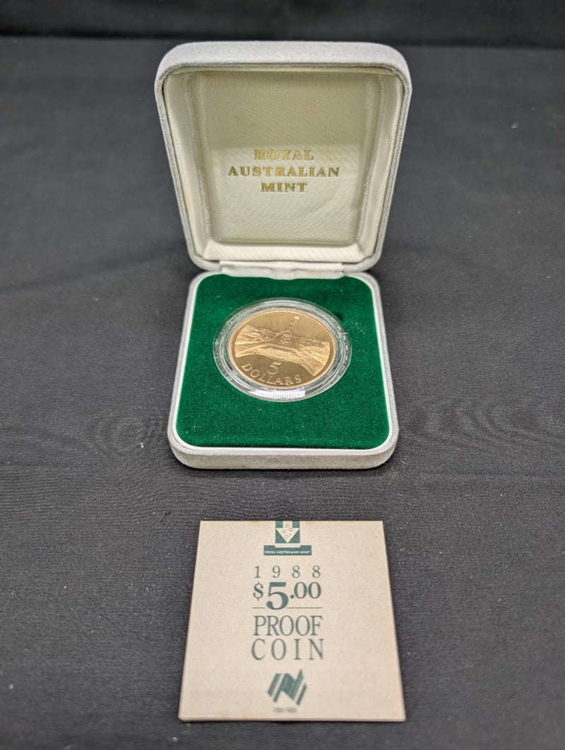 1988 PARLIAMENT HOUSE FIVE DOLLAR UNCIRCULATED COIN PROOF BOX Condition: Unc 584541+9