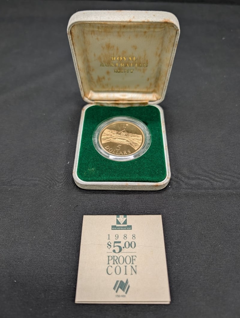 1988 PARLIAMENT HOUSE FIVE DOLLAR UNCIRCULATED COIN PROOF BOX Condition: Unc 584541+11