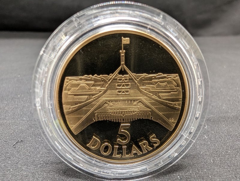 1988 PARLIAMENT HOUSE FIVE DOLLAR UNCIRCULATED COIN PROOF BOX Condition: Unc 584541+13