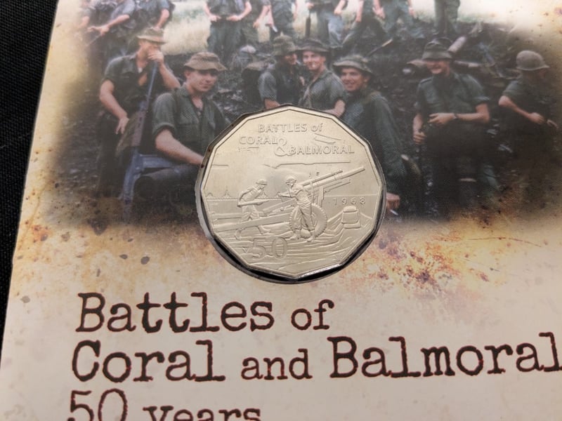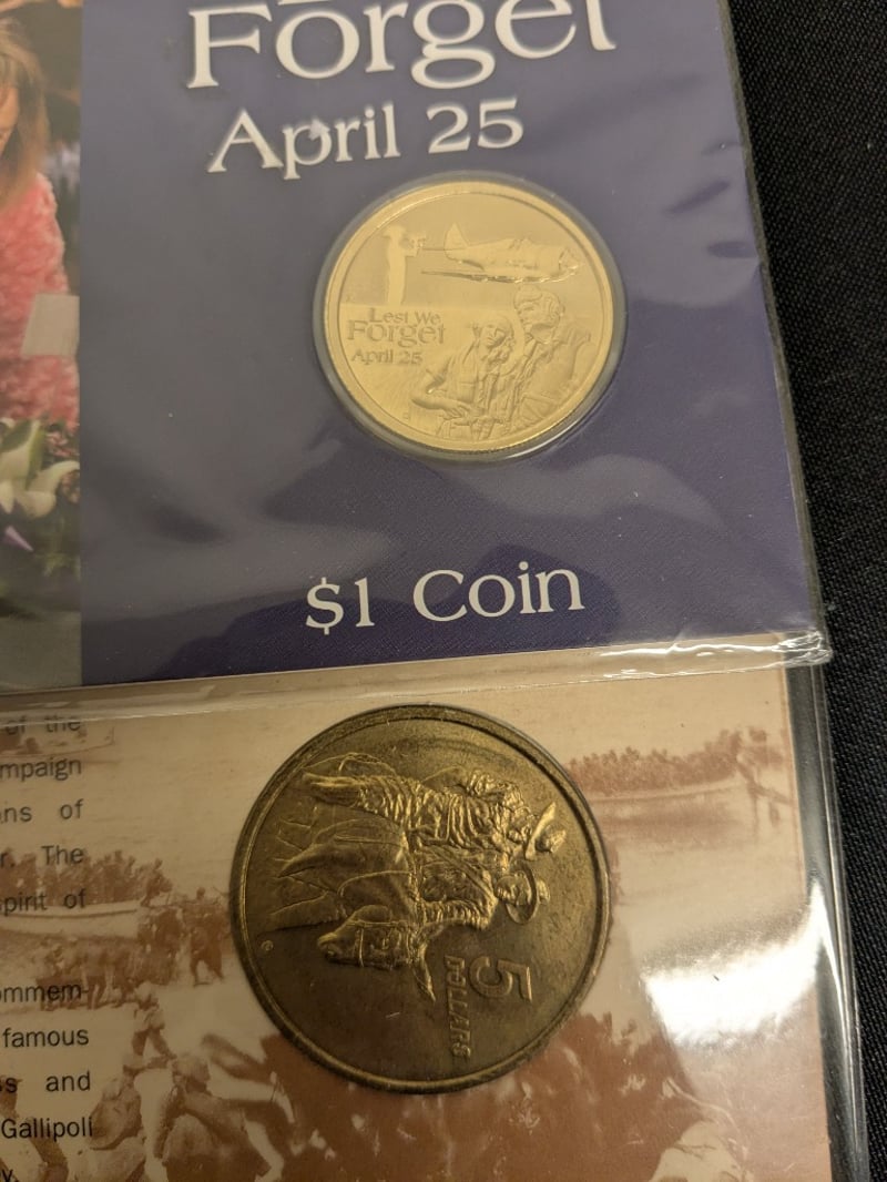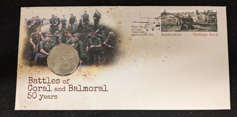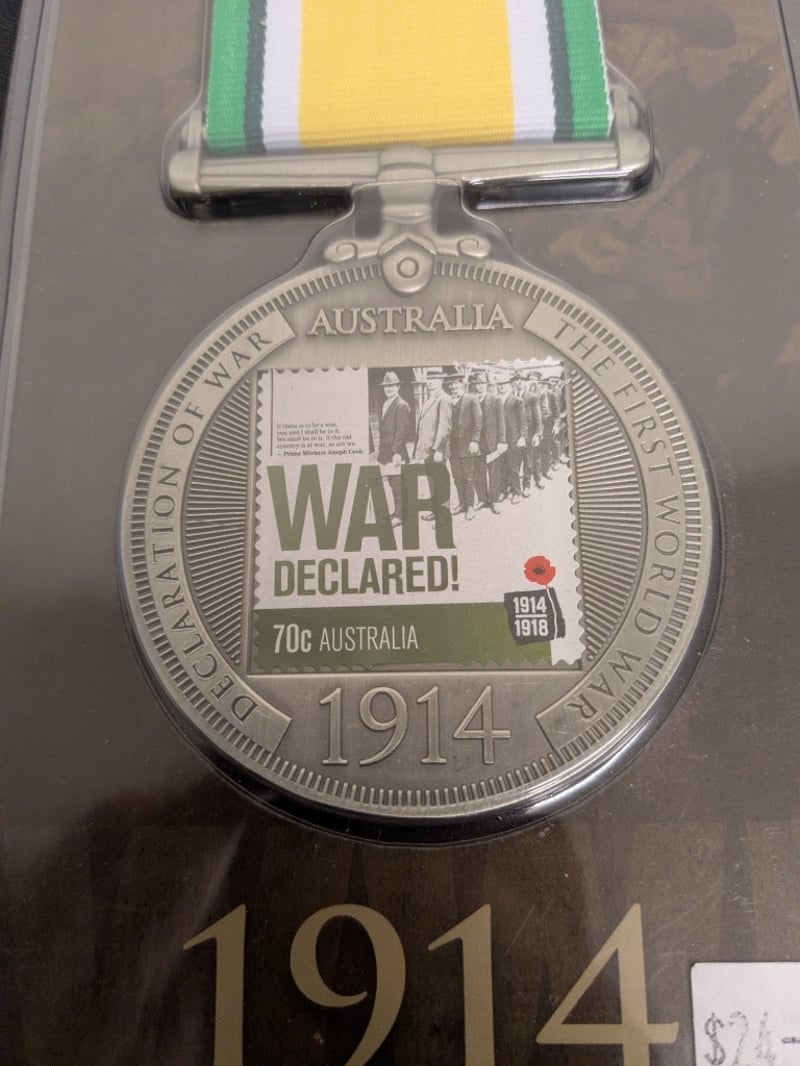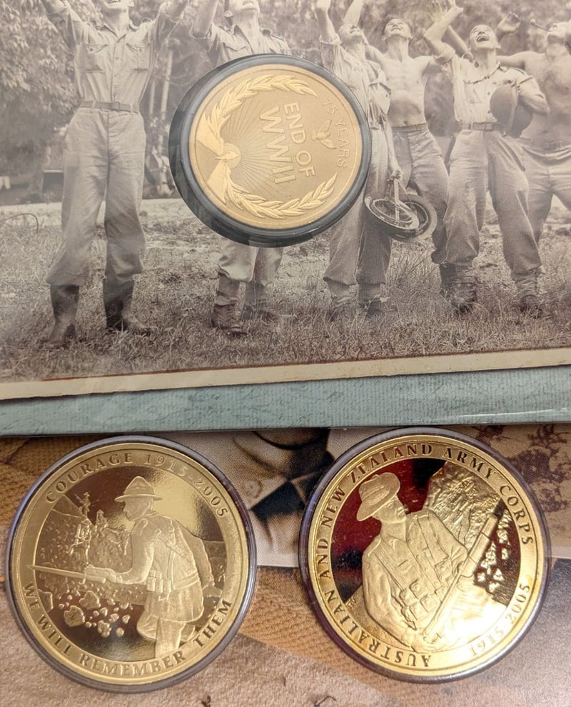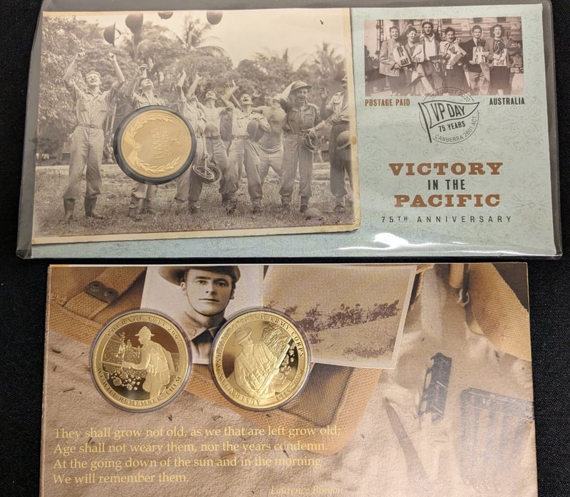 COLLECTION OF MILITARY PNC CARDED UNCIRCULATED COINS AND MEDALLIONS Includes 1914 Replica Declaration Of War Medal, 2022 Anzac Day One Dollar Coin, 1945-1975 Australian Active Service Medal, Etc Condition: Aunc 584541+41