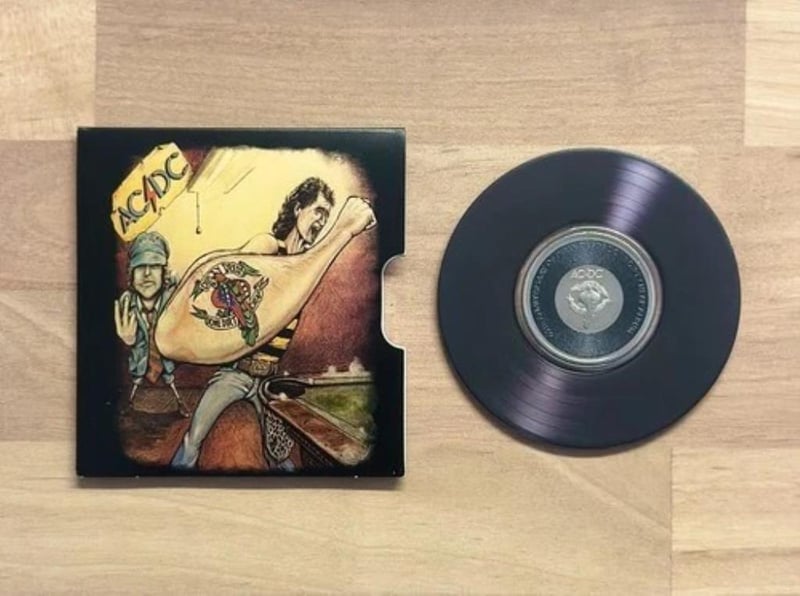 2021 20C AC/DC DIRTY DEEDS DONE DIRT CHEAP COLOURED CARDED COIN IN ALBUM SLEEVE 294185+4