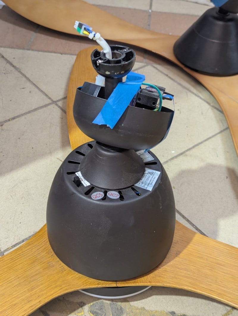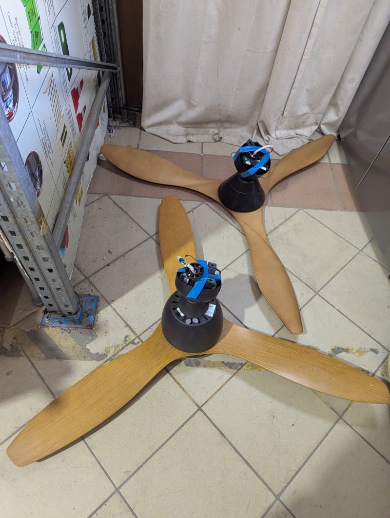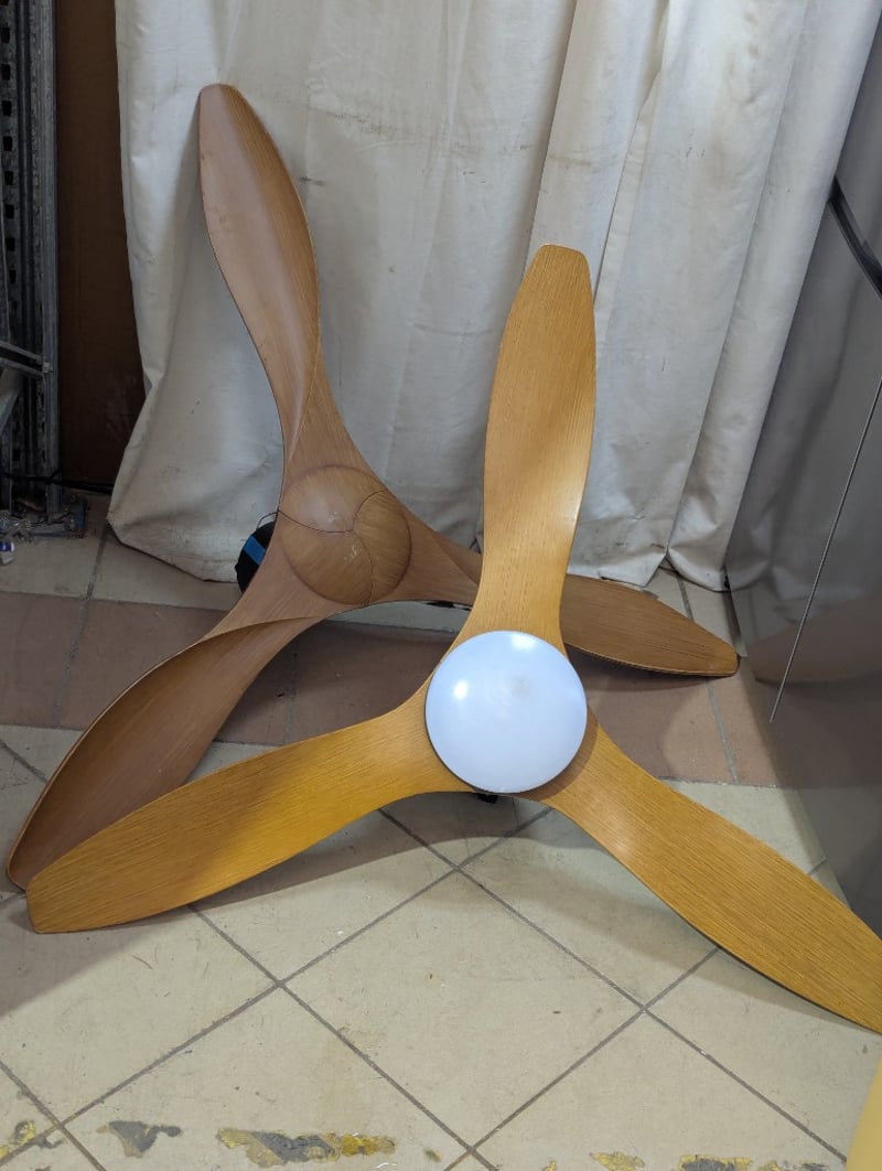 Ceiling fans, timber blades, no remotes included Blade dimensions: 56cm and 50cm