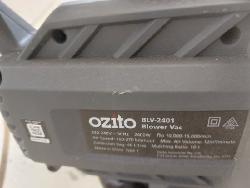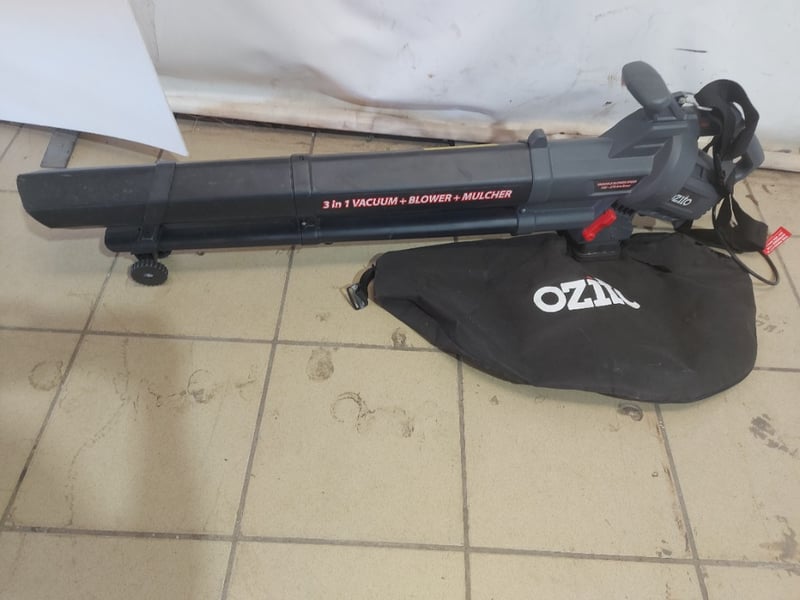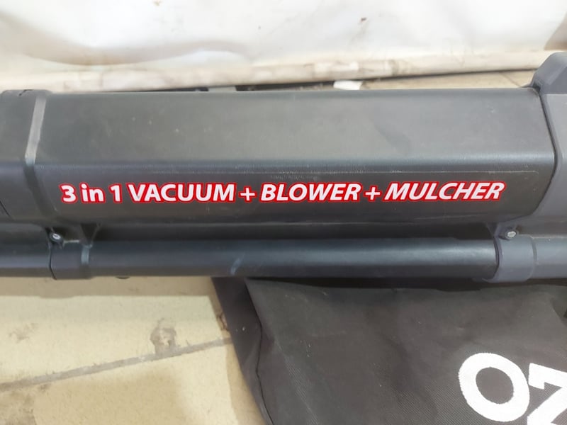 Ozito BLV-2401 3-in-1 Blower Vac in black. Features vacuum, blower, and mulching functions with 40-litre collection bag.
