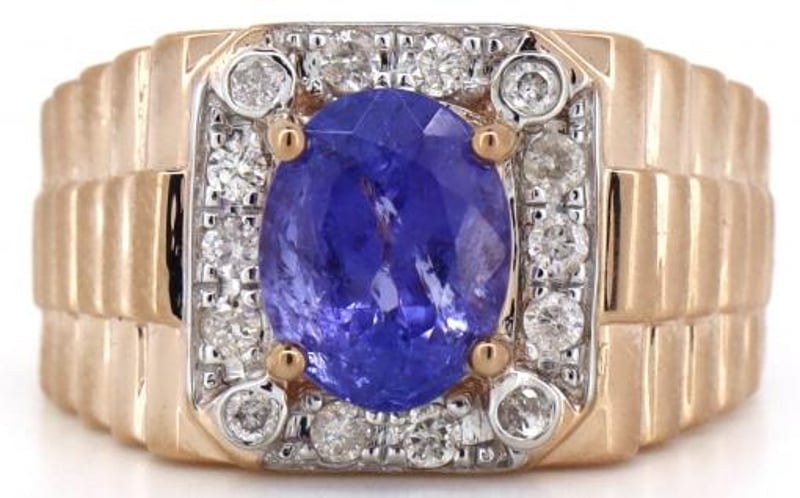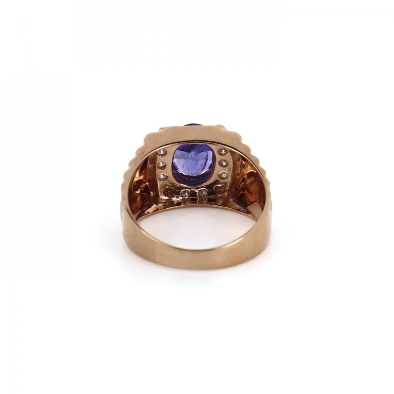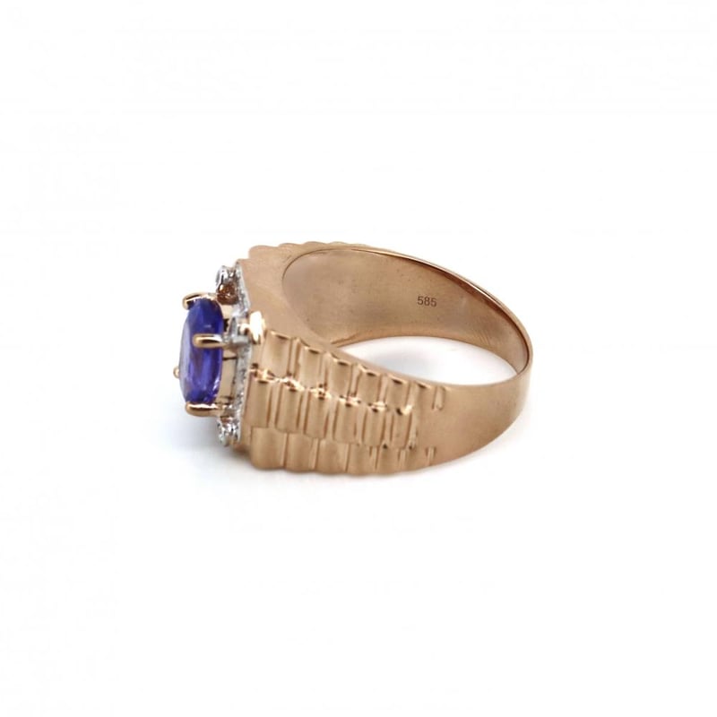 14CT ROSE/WHITE GOLD, TANZANITE AND DIAMOND, GENTS RING.