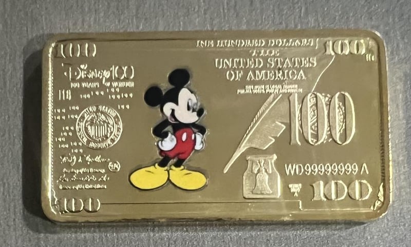WALT DISNEY MICKEY MOUSE RECTANGLE GOLD PLATED LIMITED EDITION MEDALLION 294185+26