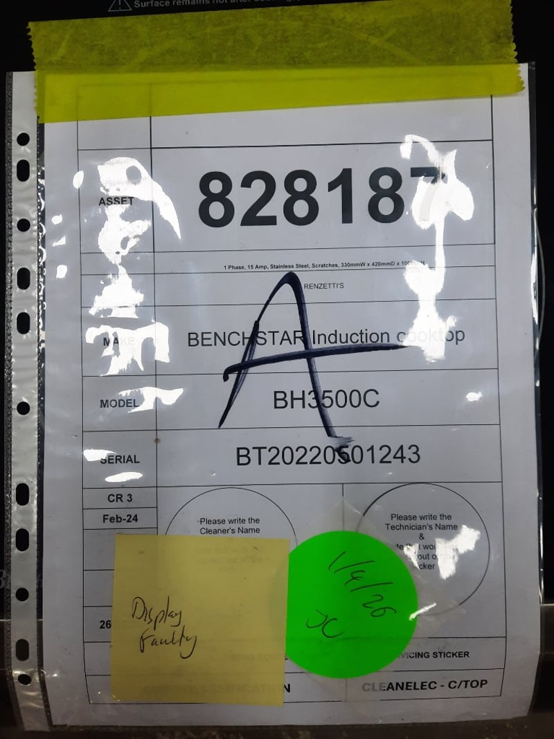 BENCHSTAR induction Cooktown1 phase, 15 amp, stainless steel, scratchesModel: BH3500CDimensions: H: 100mm W: 330mm D: 420mm