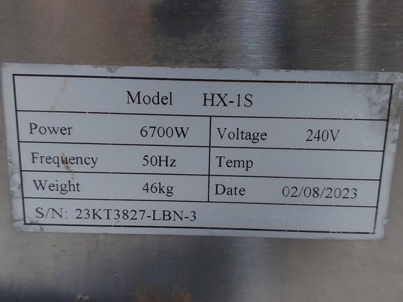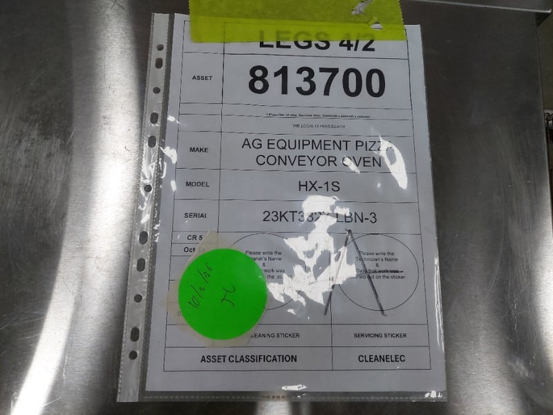 AG Equipment Pizza Conveyor Oven 1 Phase HW, 32 Amp, Stainless Steel Model: HX-1S Dimensions: 152cm W x 62cm D x 43cm H