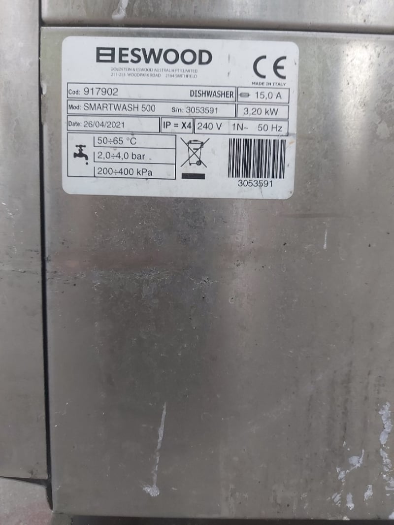 ESWOOD Undercounter Dishwasher, Model: SMARTWASH 500, 1 Phase, 15 Amp, Stainless Steel, Scratches
