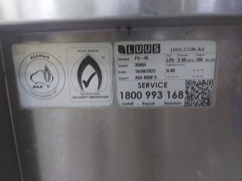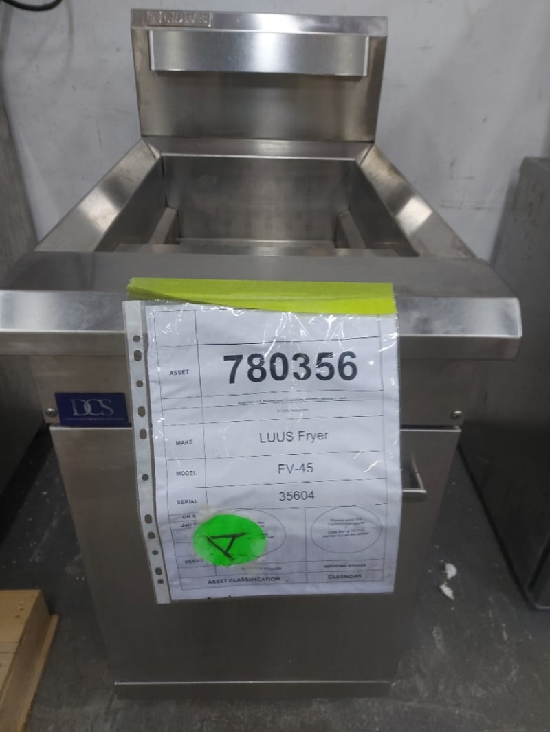 LUUS Fryer, Model: FV-45, Serial: 35604, Single Pan, L.P.G, Stainless Steel, Free-standing,