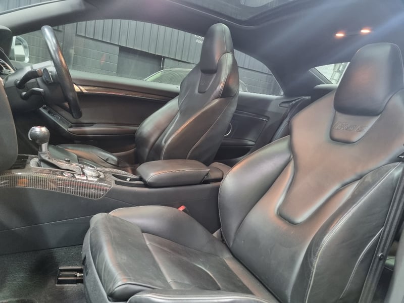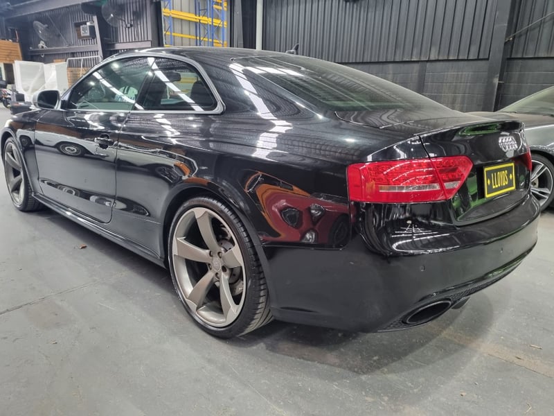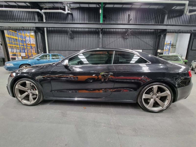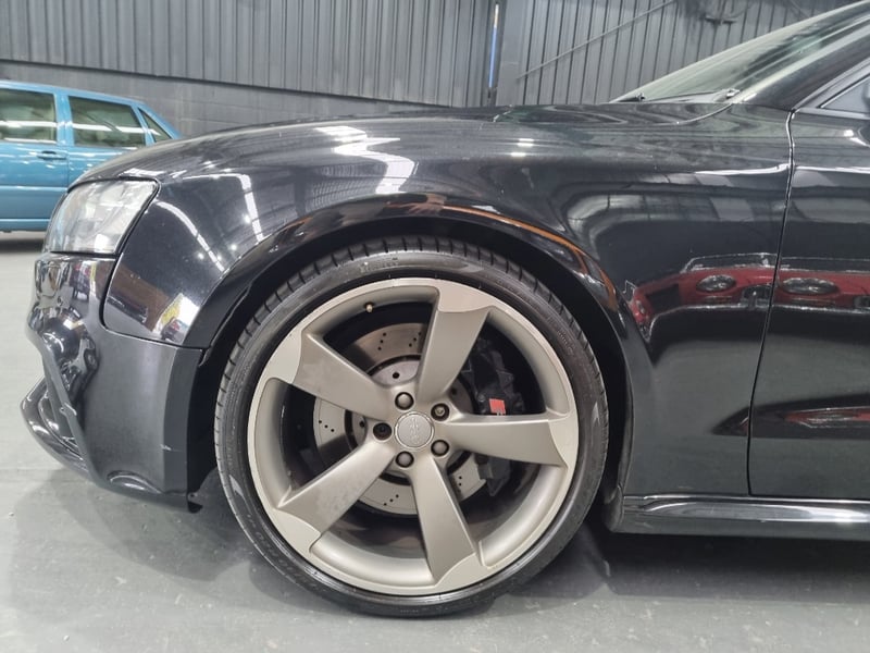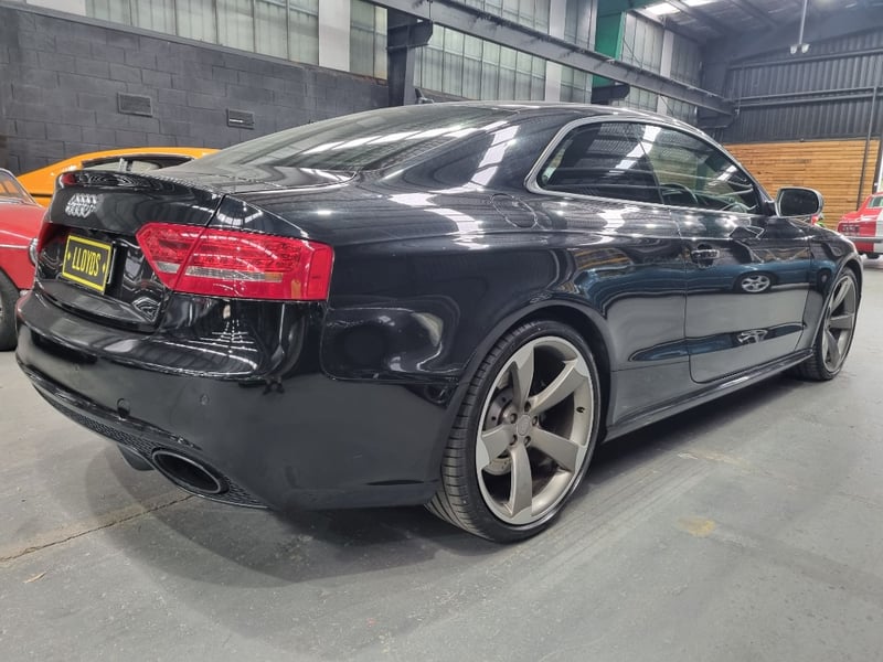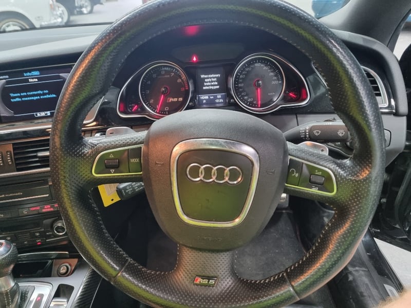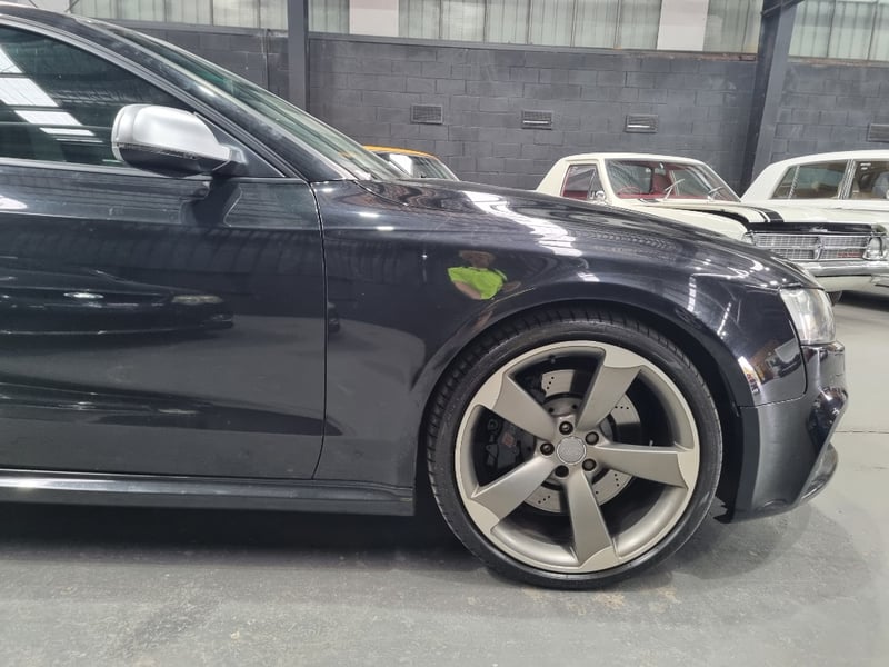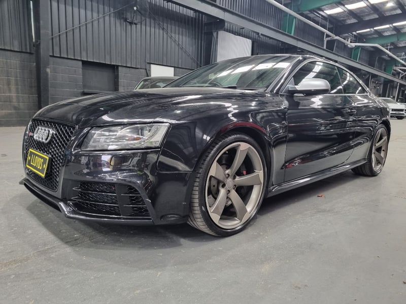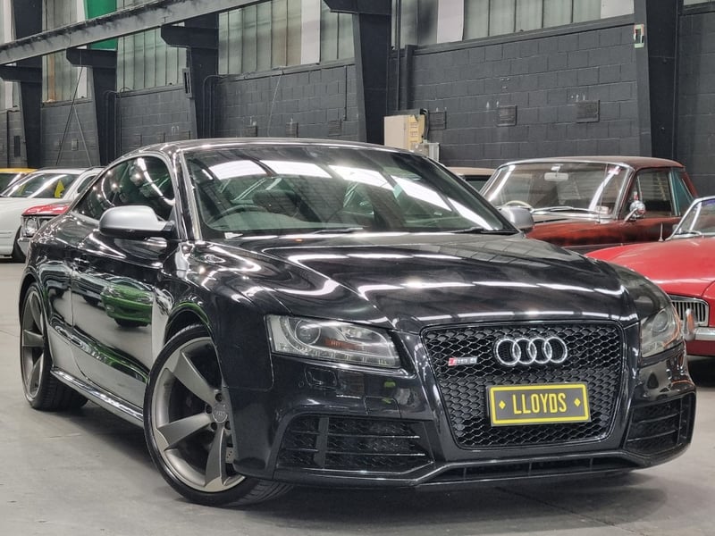 Exceptional 2009 Audi RS5 B8 Coupe finished in striking black with premium leather interior. This high-performance machine features a supercharged 4.2-litre V8 engine delivering impressive power and responsiveness. Equipped with a 7-speed automatic transmission and rear-wheel drive configuration, the RS5 offers dynamic handling and exhilarating performance. The vehicle displays 142,406 kilometres on the odometer and comes complete with comprehensive service records documenting regular maintenance. Original owner manuals and navigation system documentation included. Distinctive RS5 badging, iconic honeycomb grille, and aggressive body styling showcase Audi's performance heritage. Premium leather sport seats with RS5 embroidery, carbon fibre interior trim, and advanced multimedia system enhance the driving experience. This is a genuine performance icon for the discerning collector. Minor scuff marks on driver's side door panel, light surface scratches on lower rear bumper, minor wear to leather seat bolsters consistent with age and usage.. Inspection recommended.