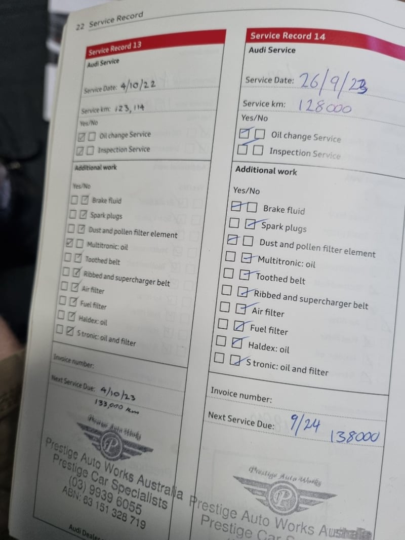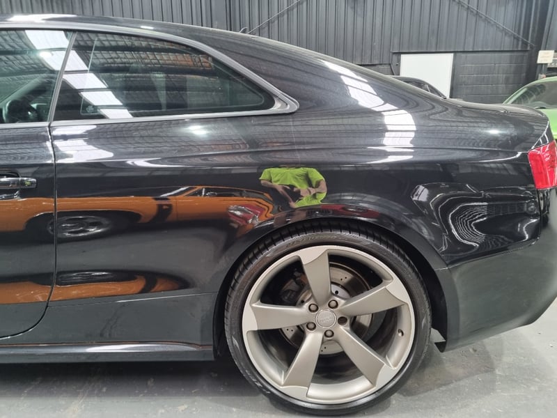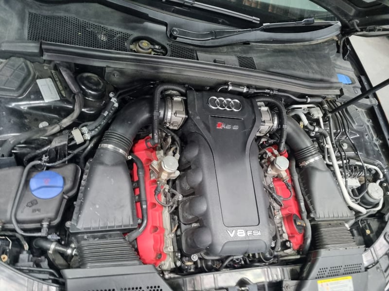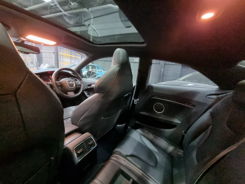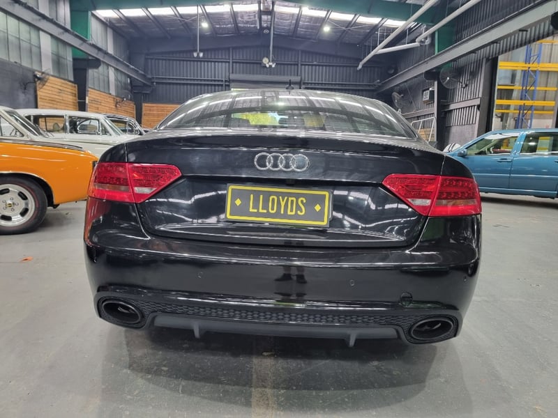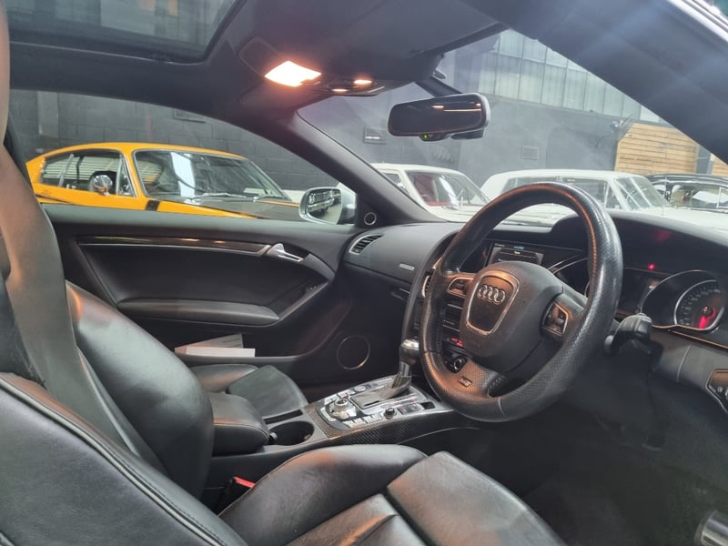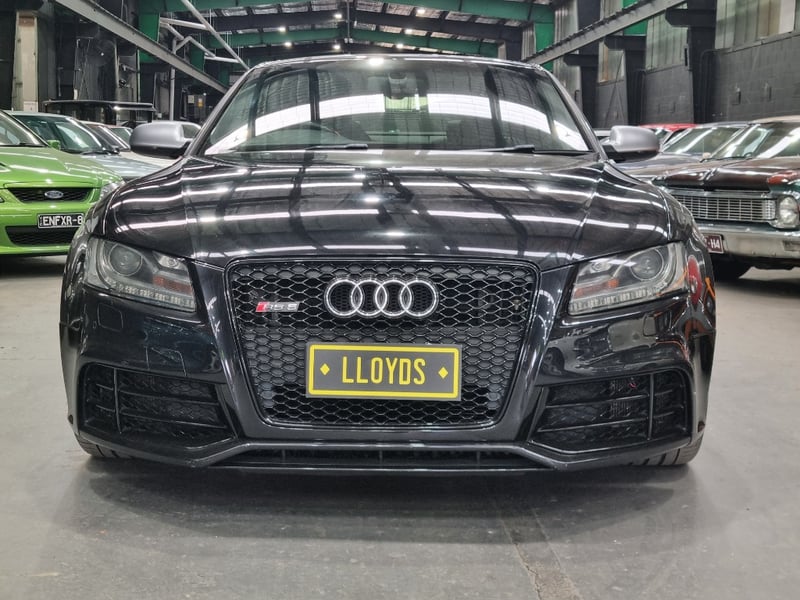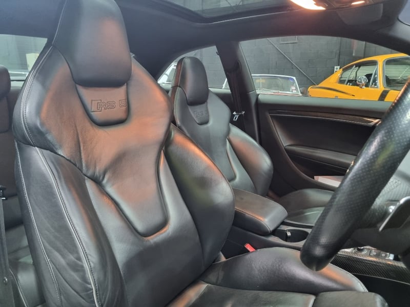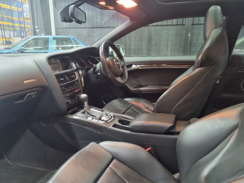 Exceptional 2009 Audi RS5 B8 Coupe finished in striking black with premium leather interior. This high-performance machine features a supercharged 4.2-litre V8 engine delivering impressive power and responsiveness. Equipped with a 7-speed automatic transmission and rear-wheel drive configuration, the RS5 offers dynamic handling and exhilarating performance. The vehicle displays 142,406 kilometres on the odometer and comes complete with comprehensive service records documenting regular maintenance. Original owner manuals and navigation system documentation included. Distinctive RS5 badging, iconic honeycomb grille, and aggressive body styling showcase Audi's performance heritage. Premium leather sport seats with RS5 embroidery, carbon fibre interior trim, and advanced multimedia system enhance the driving experience. This is a genuine performance icon for the discerning collector. Minor scuff marks on driver's side door panel, light surface scratches on lower rear bumper, minor wear to leather seat bolsters consistent with age and usage.. Inspection recommended.