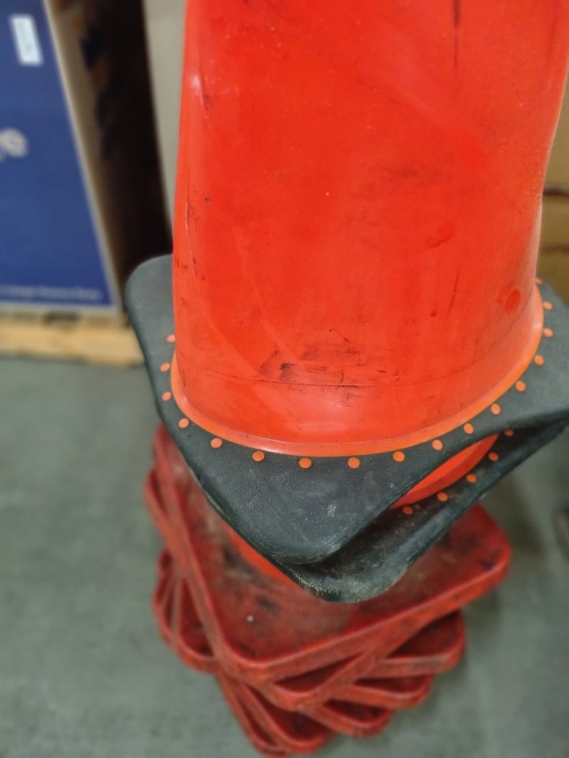 Traffic control cones,orange,various sizes and brands. Sold as lot Note: signs of wear