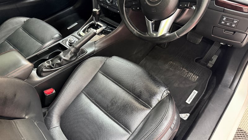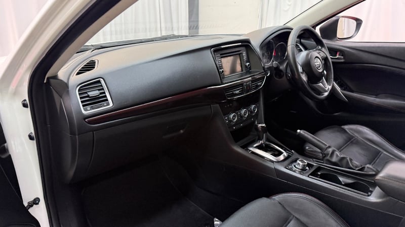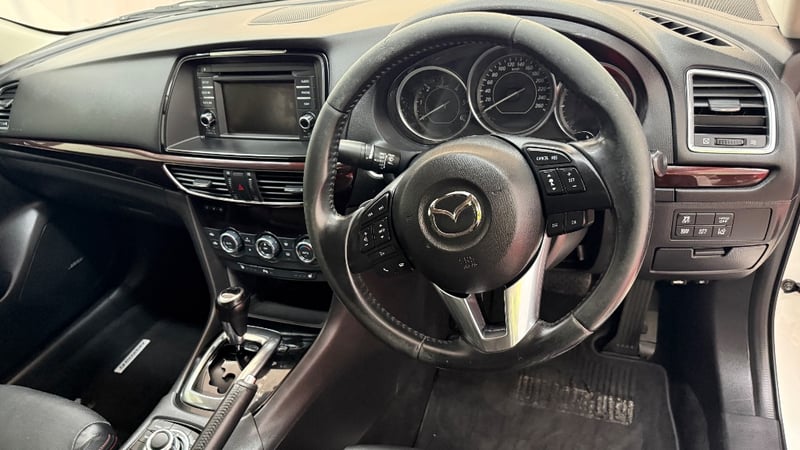 Description/extras: Immaculate 2013 Mazda 6 GJ Sedan in Pearl White, presenting as an exceptionally well-maintained example. This front-wheel-drive sedan features a 2.0-litre naturally aspirated inline four-cylinder petrol engine paired with a smooth six-speed automatic transmission. The odometer displays a genuine 227, 942kilometres, indicating minimal use and meticulous ownership. The vehicle showcases a pristine pearl white exterior complemented by a sophisticated black leather interior with contrasting stitching. The cabin features dual-zone climate control, a touchscreen infotainment system with Bluetooth connectivity, and comprehensive safety equipment. The SkyActiv engine technology delivers efficient performance whilst maintaining reliability. Five-seat configuration with comfortable leather appointments throughout. Alloy wheels in excellent condition. No visible damage detected, needs battery replacement Inspection recommended.