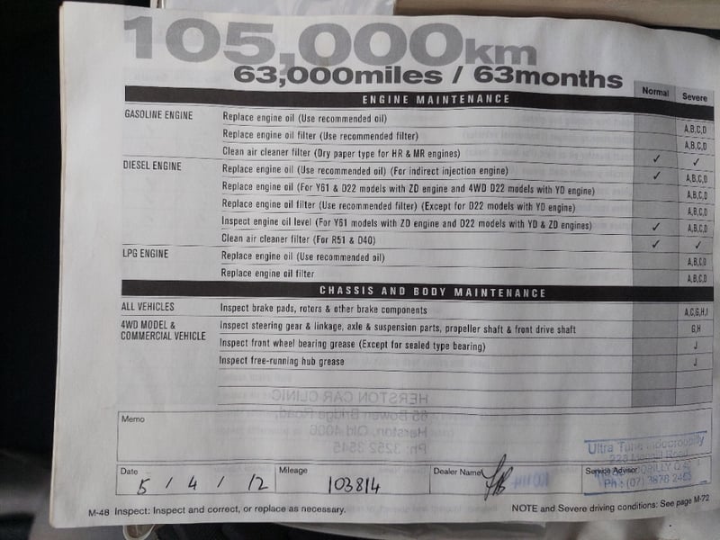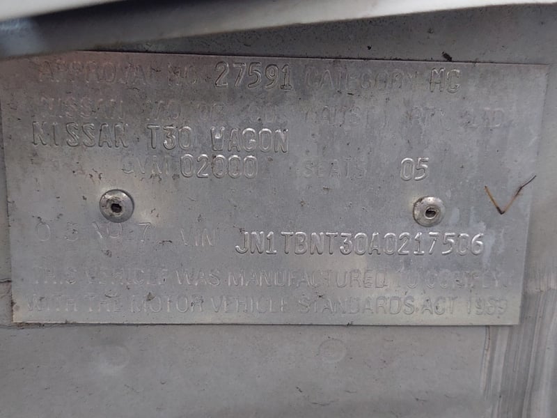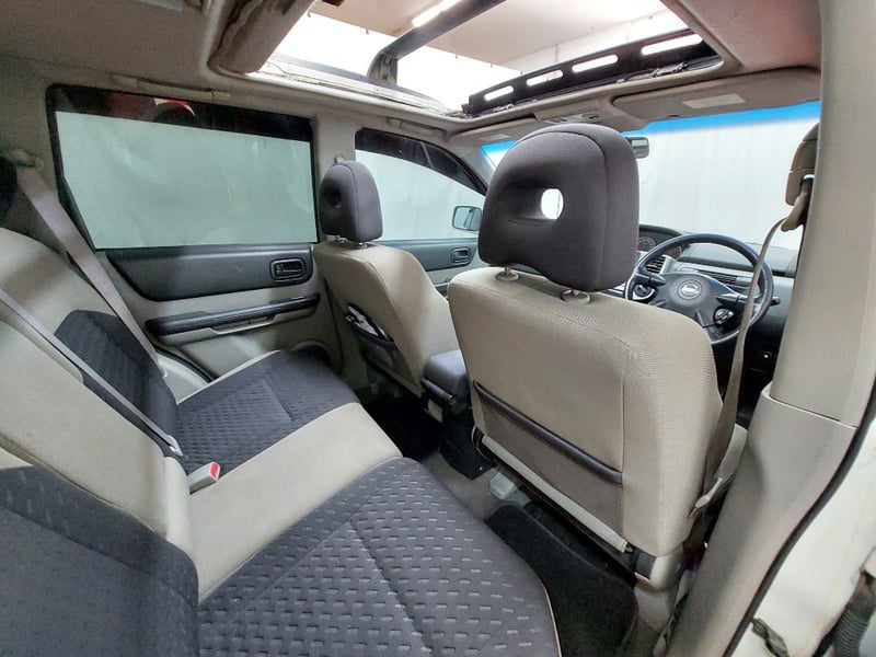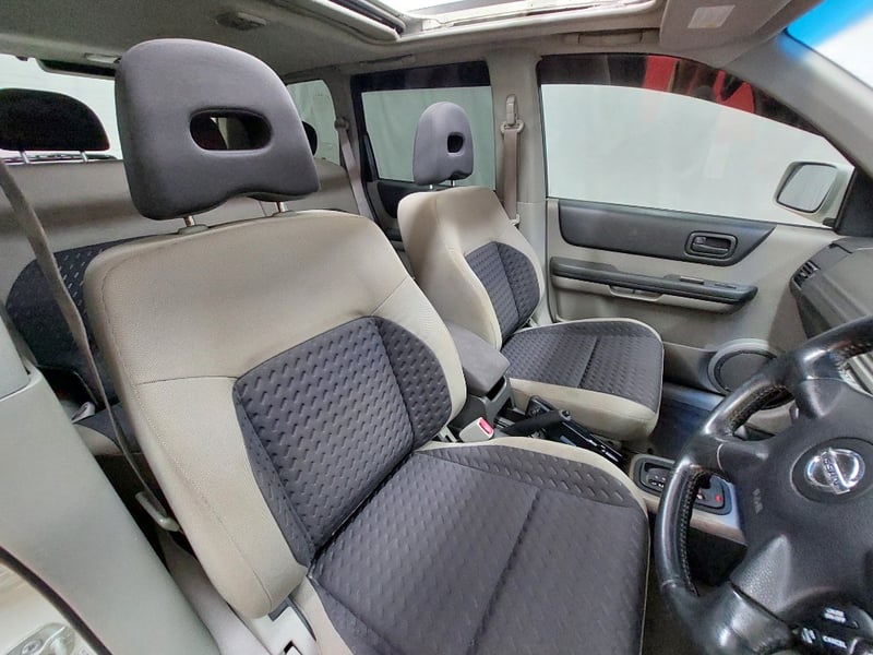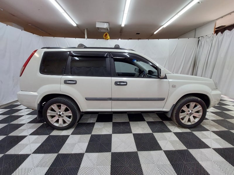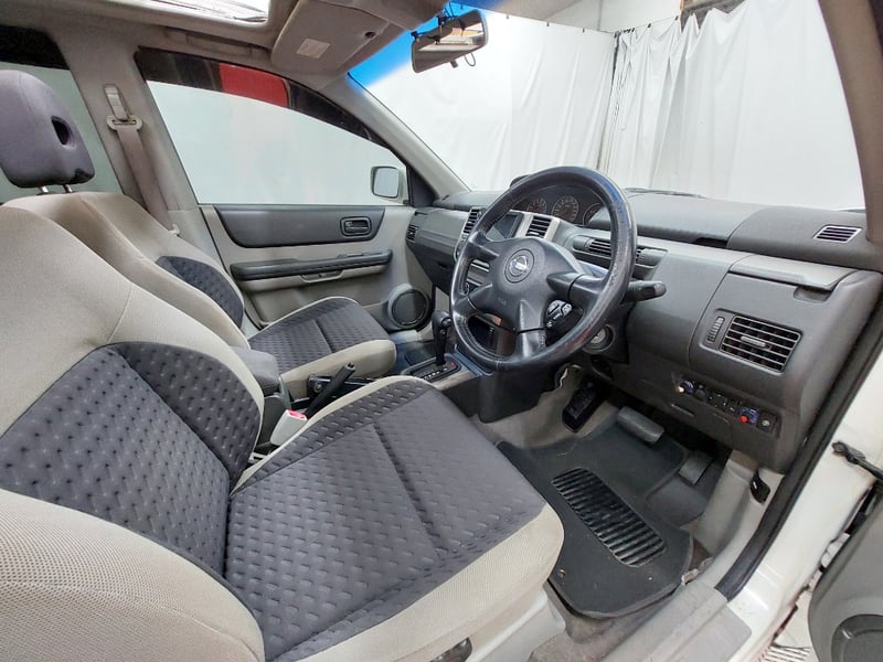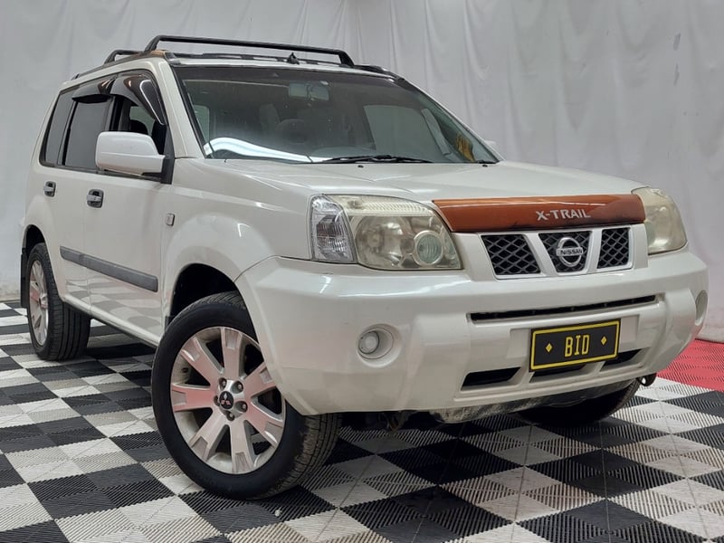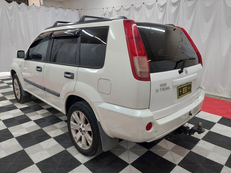 2007 Nissan X-Trail T30 ST in White, a practical five-door SUV with 195,463 kilometres on the odometer. Powered by a 2.5-litre inline four-cylinder petrol engine producing 126 kW, paired with a four-speed automatic transmission and four-wheel drive system. The vehicle features right-hand drive configuration, five seats, and a spacious cargo area with roof rails. Interior presents a beige and charcoal colour scheme with quilted fabric upholstery. The dashboard houses a touchscreen multimedia unit with climate control, power windows, and door locks. Includes original owner's manual and service logbook documenting maintenance history. The vehicle displays typical wear consistent with age and mileage, with some cosmetic imperfections visible on the exterior panels and bumpers. Air conditioning does not work, Scratches and scuffs on front bumper, minor dents on driver-side door, paint chips on rear tailgate, surface rust on roof rack, worn door handle trim, light scratches on rear bumper, minor creasing on passenger-side panel, weathered trim around window seals, small dent on rear quarter panel, cosmetic wear on exterior trim pieces.. Inspection recommended.