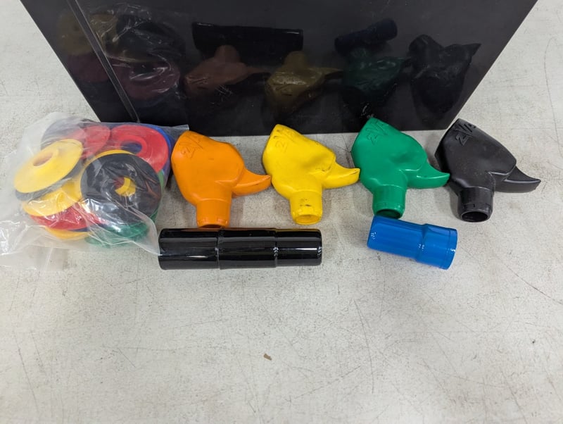 Assorted rubber covers for fuel pumps, various coloursSOLD AS LOT