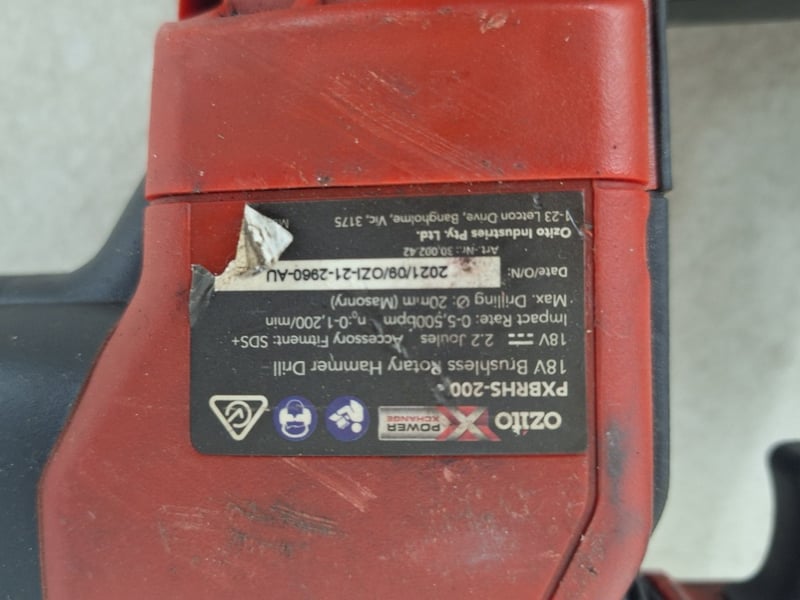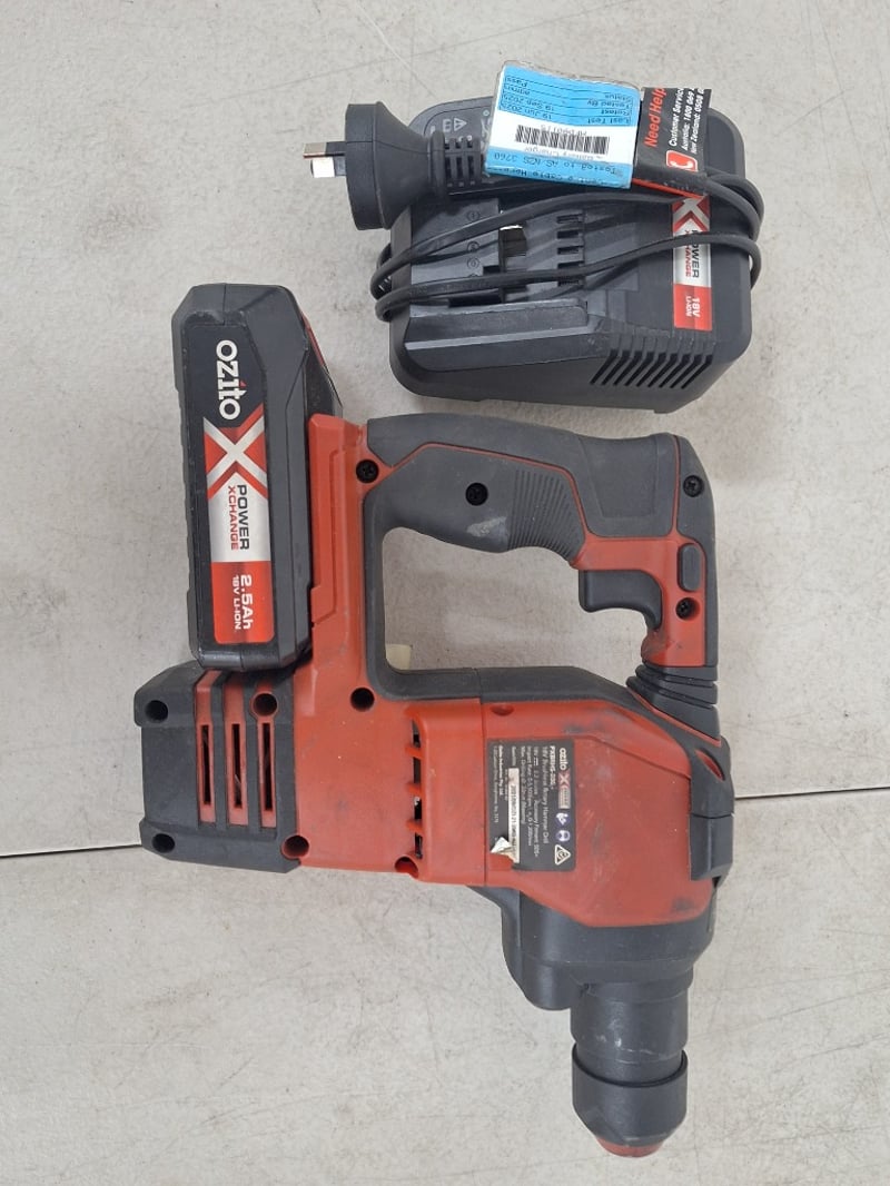 Ozito PXBRHS-200, Rotary Hammer Drill, Includes 2.5Ah 18v Li-ion Battery Amd 18v Charge Station