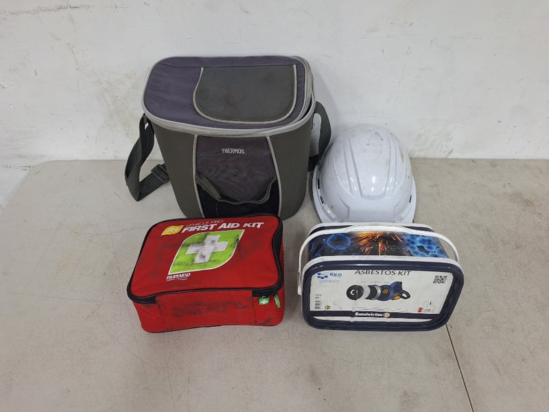 Thermos Esky, Asbestos Kit, Hard Hat And Vehicle Pro First Aid Kit