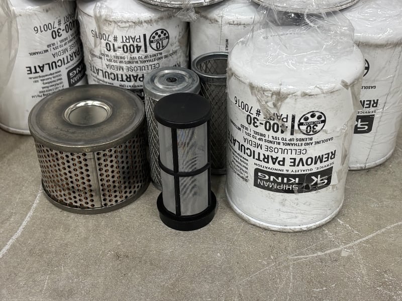 Fuel Transfer Pump Filter, Air filter cartridges and Small Inline Fuel Filters, Varied Sizes and Models, Varied Condition Sold as lot.