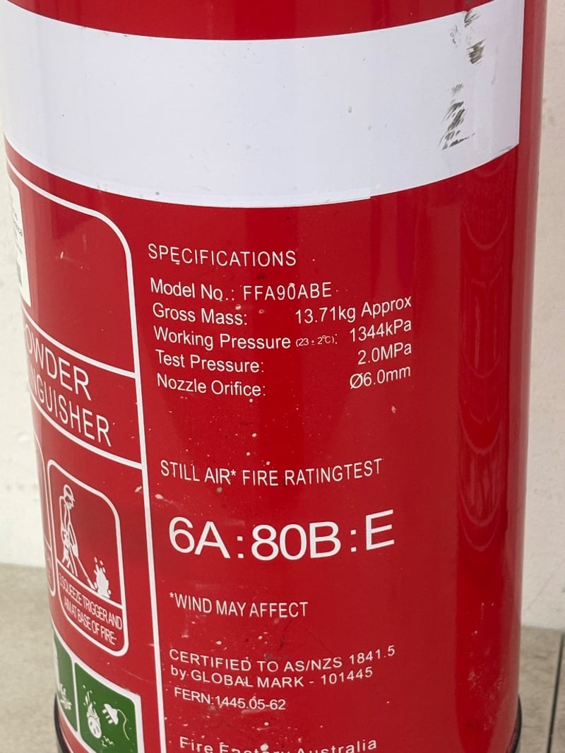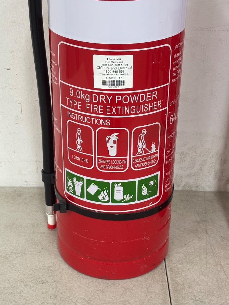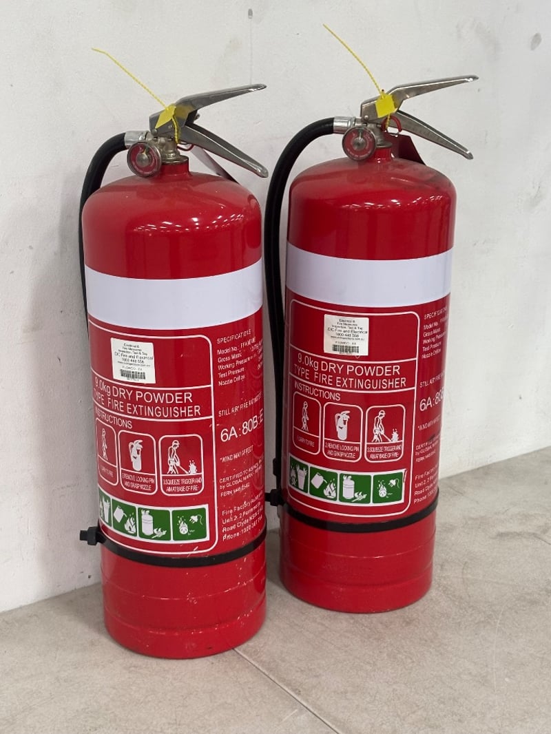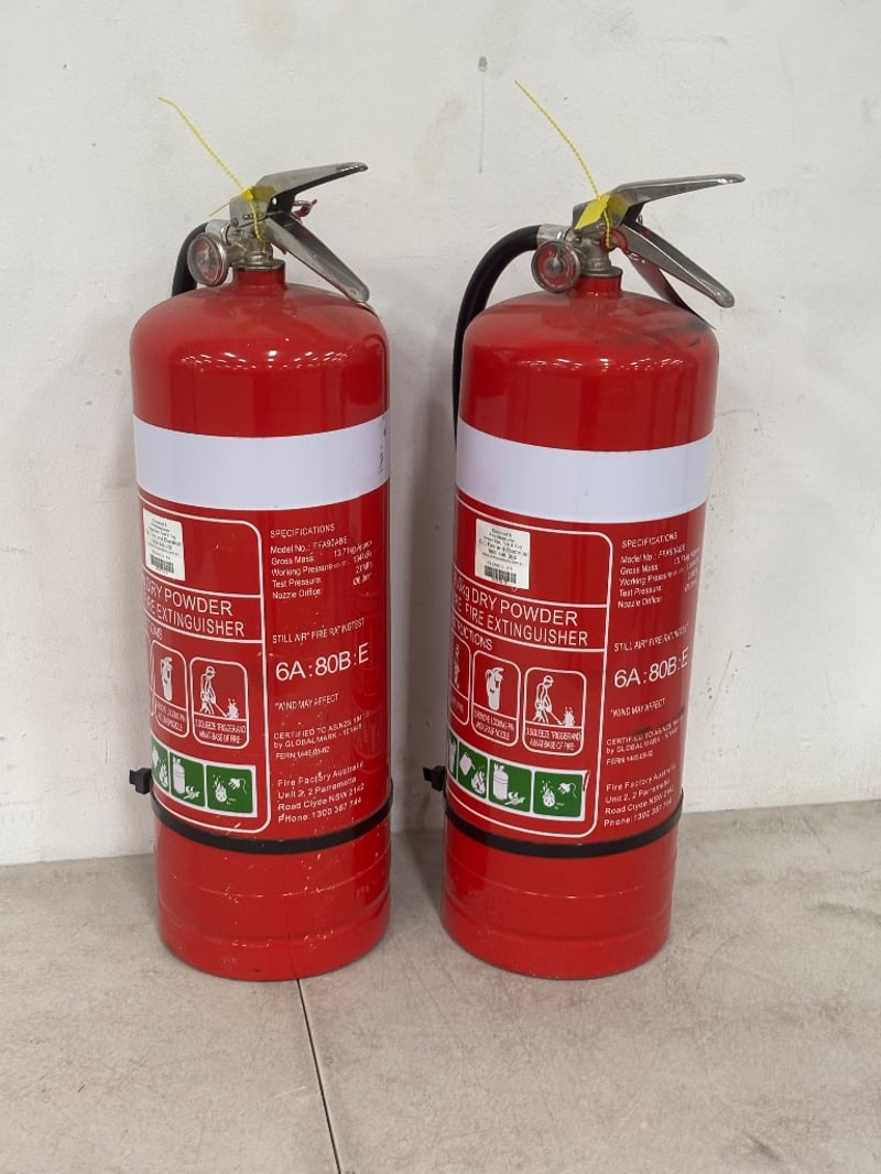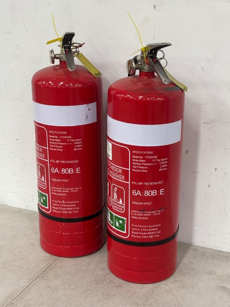 Two Fire Extinguishers, 9.0kg Dry Powder, Model: FFA90ABE, Brand: Fire Factory, Unknown: Condition Sold as lot.