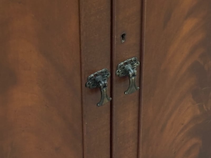 Drinks Cabinet, Victorian Styled, Mahogany Wood Styled, Wheels at base,