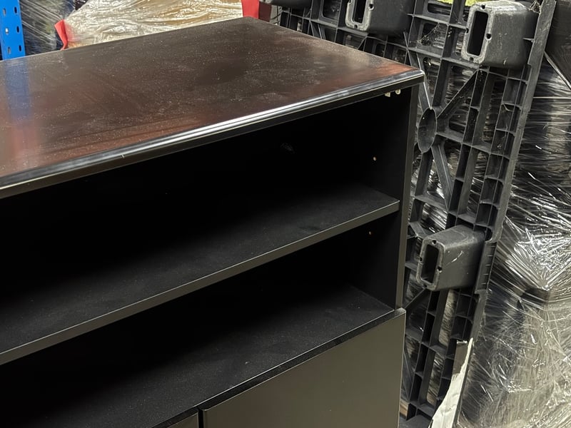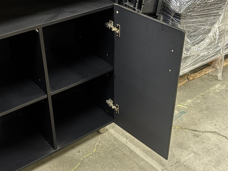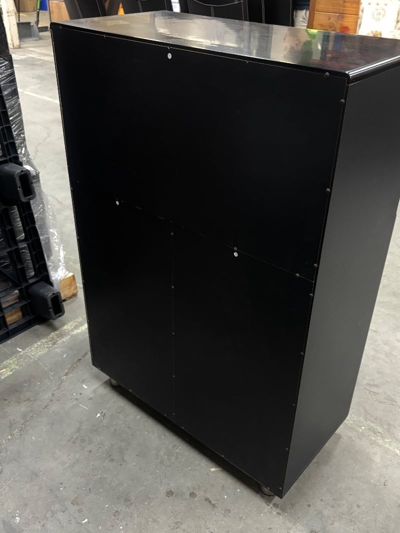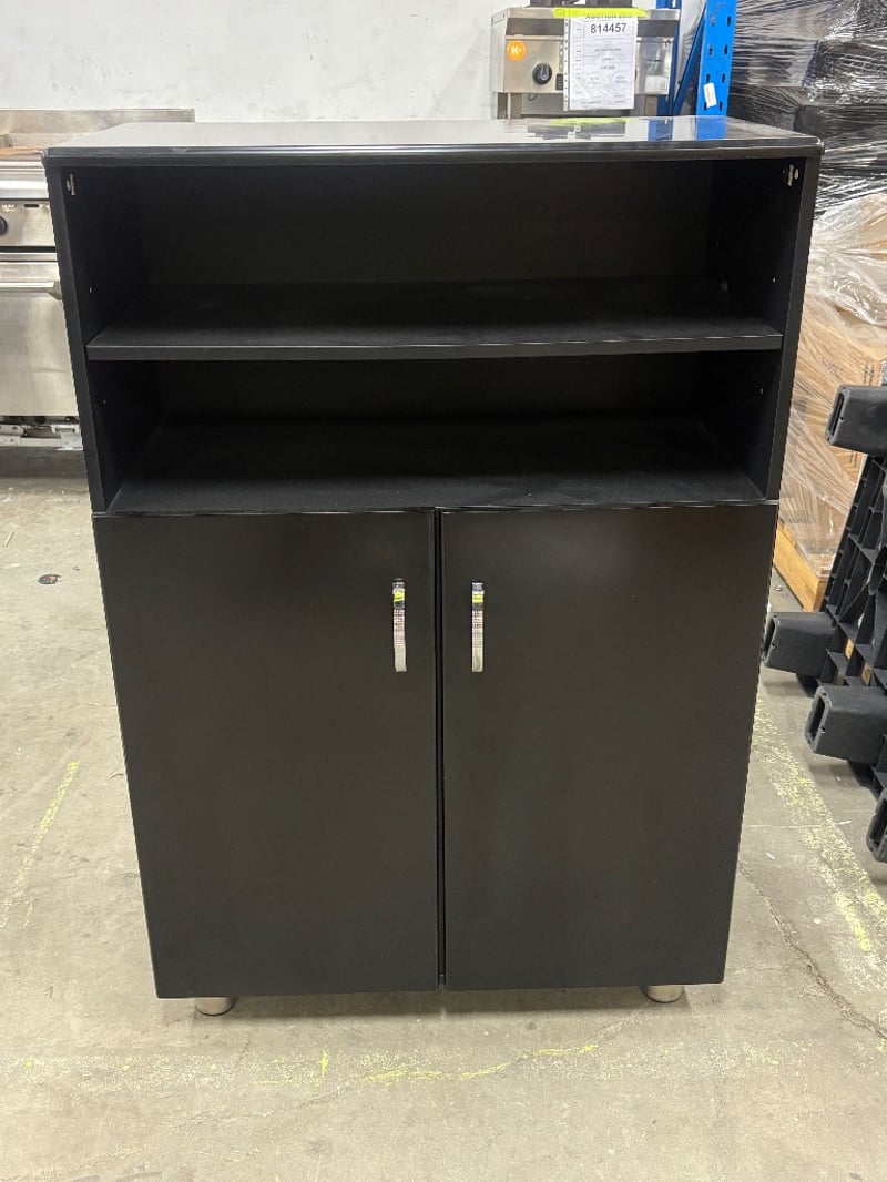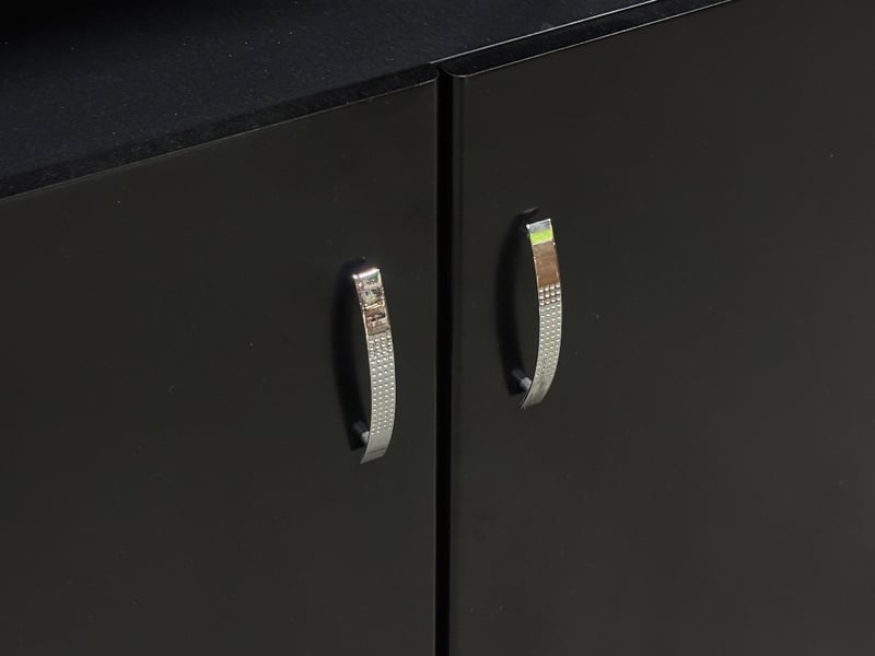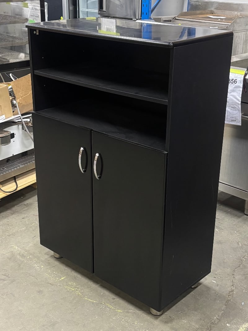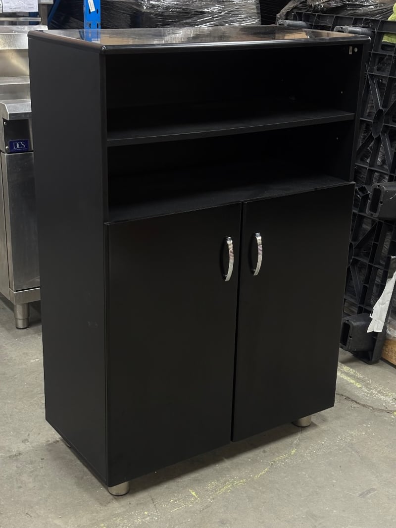 Cabinet with Shelf, Two Tier Shelf, Two Tier Cabinet, Chrome Finish on Handles, Satin Black Finish,