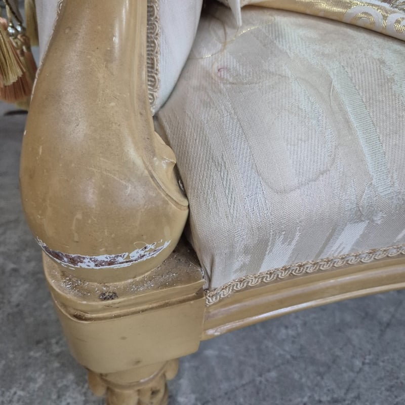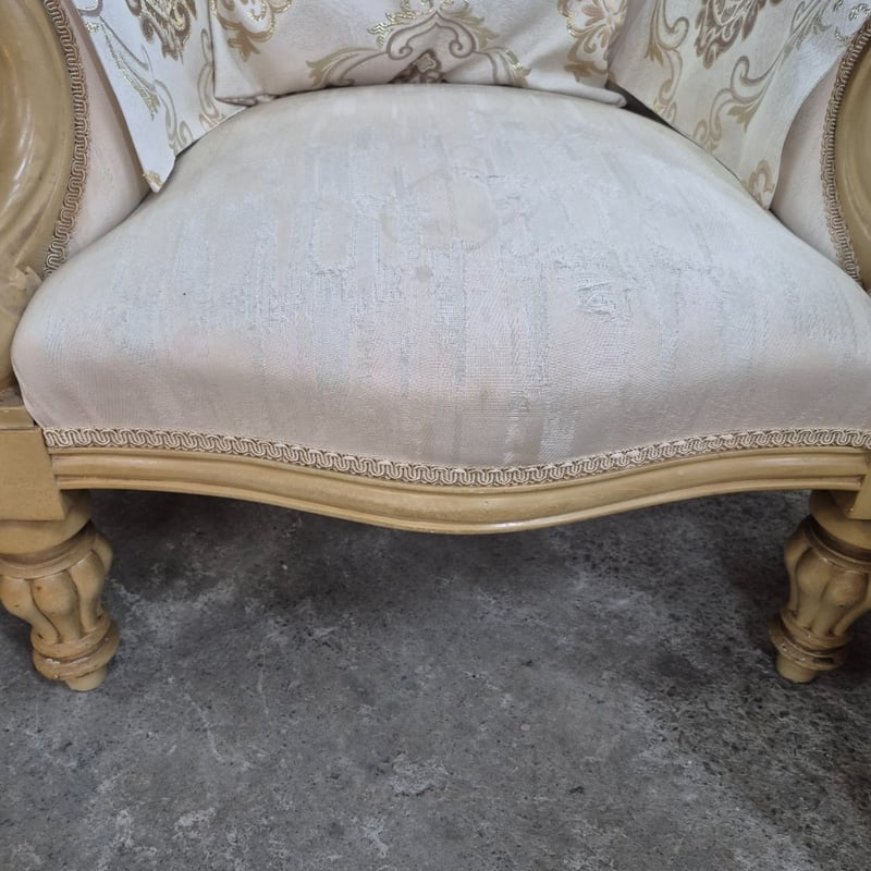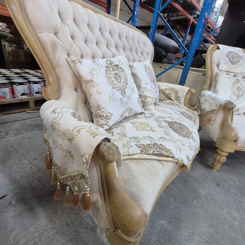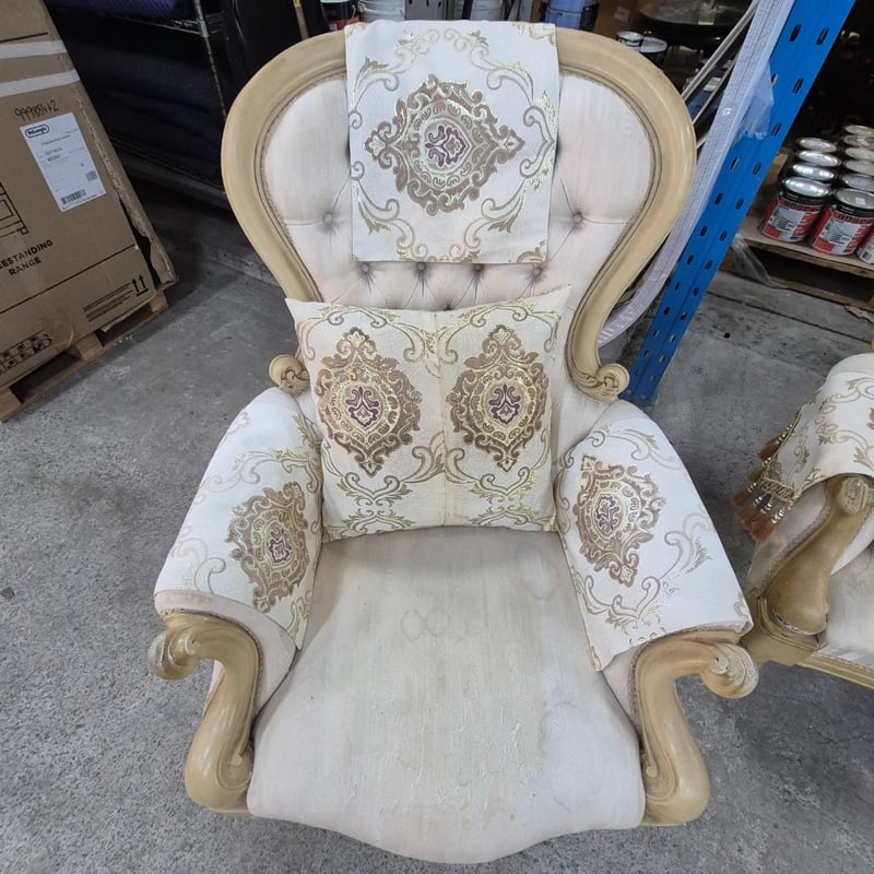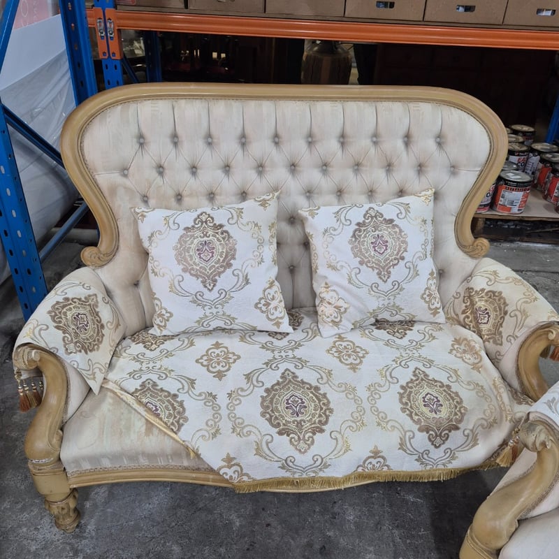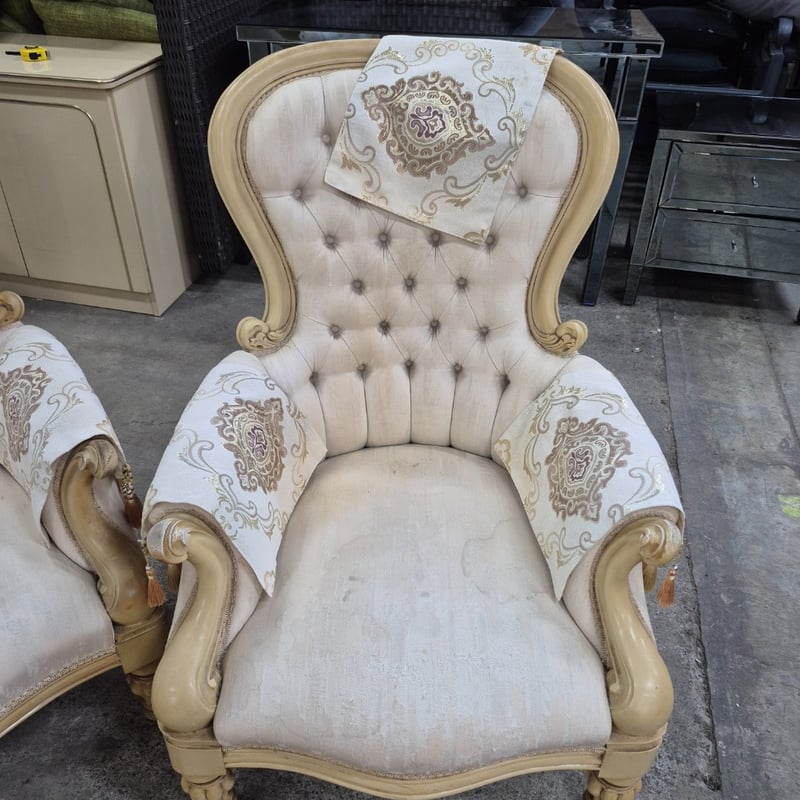 Lounge suite comprising a two-seater settee and pair of matching wingback armchairs.