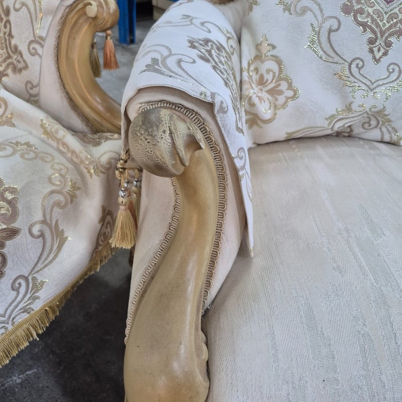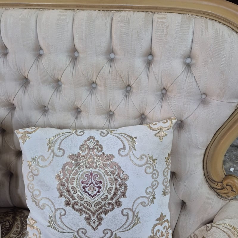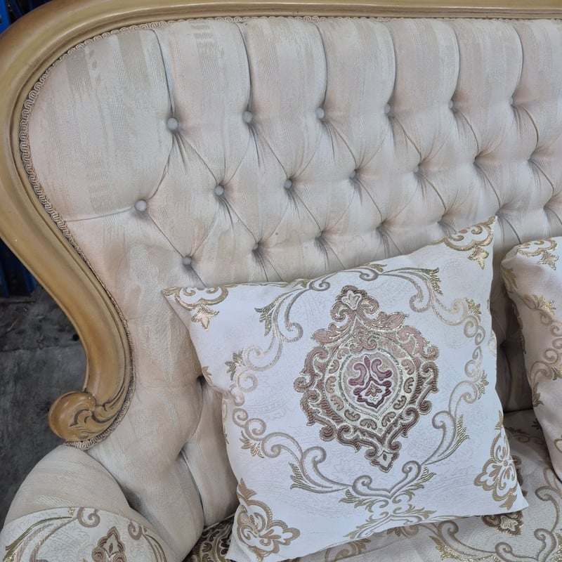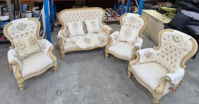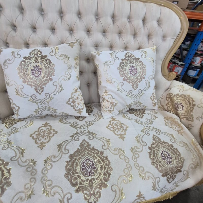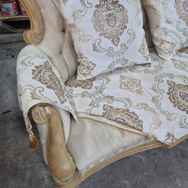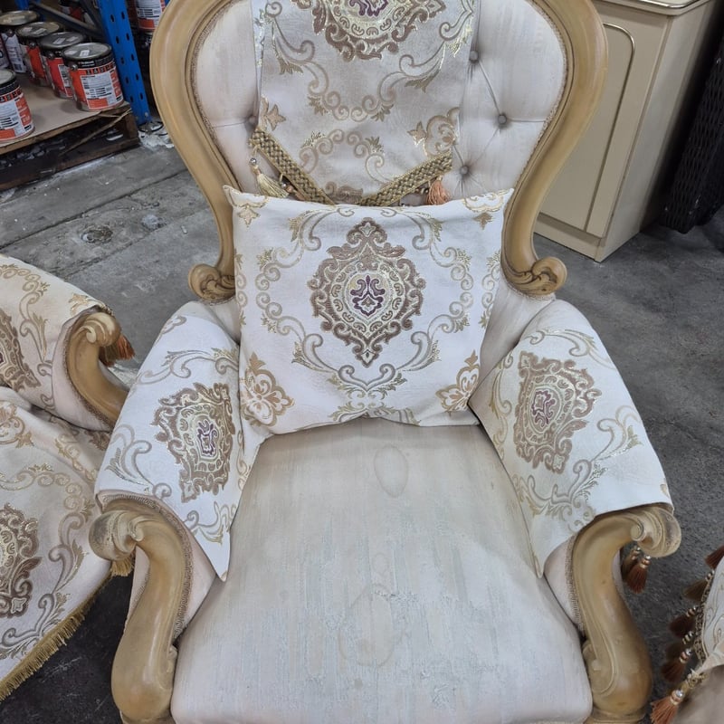 Lounge suite comprising a two-seater settee and pair of matching wingback armchairs.