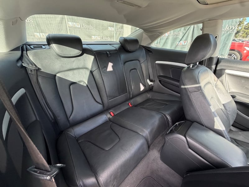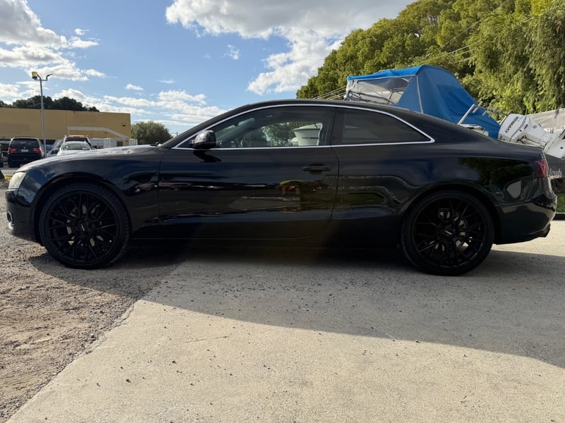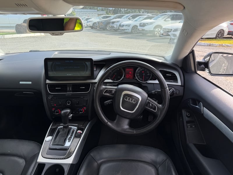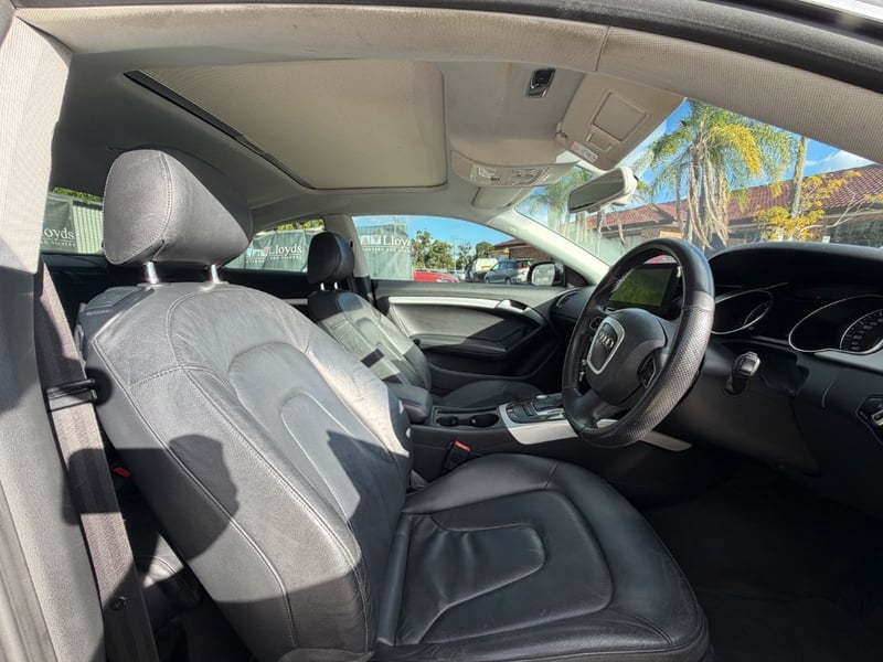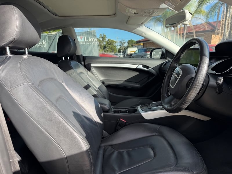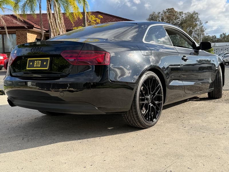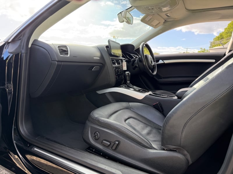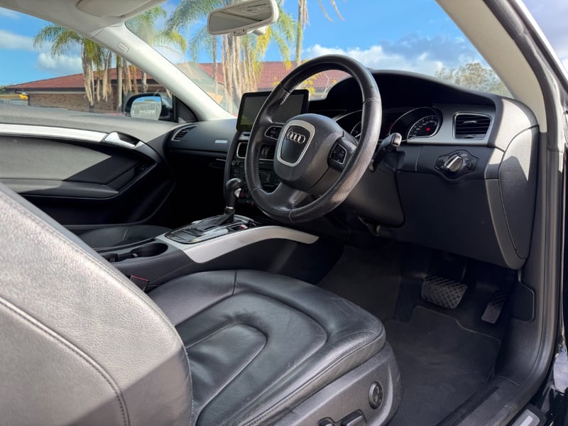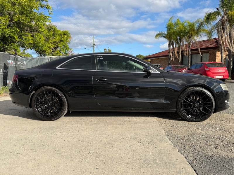 Description/extras: Stunning 2012 Audi A5 8T Coupe finished in elegant black with contrasting grey and black leather interior. This sophisticated two-door sports coupe is powered by a 2.0-litre turbocharged inline four-cylinder engine delivering impressive performance through Audi's renowned Quattro all-wheel-drive system. The automatic transmission provides smooth, responsive gear changes ideal for both spirited driving and everyday commuting. The A5 features a premium cabin with four comfortable seats, modern infotainment system with touchscreen display, and quality audio system with subwoofer. Equipped with custom alloy wheels and lowered suspension for enhanced aesthetics. The vehicle presents well with full black leather upholstery, dual-zone climate control, and comprehensive safety features. Currently showing 151,998 kilometres on the odometer. This iconic Audi coupe combines German engineering excellence with timeless design appeal. Minor scuff marks on driver's door, light wear to leather seats, general cosmetic wear consistent with age and mileage. Inspection recommended.