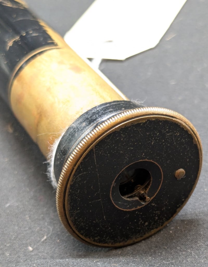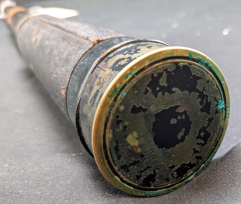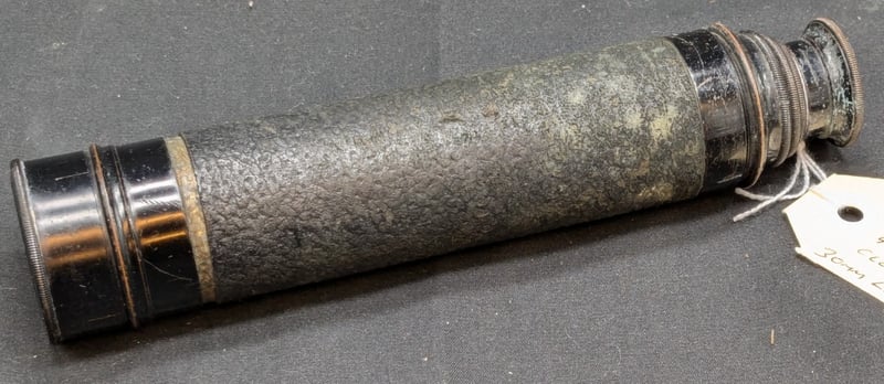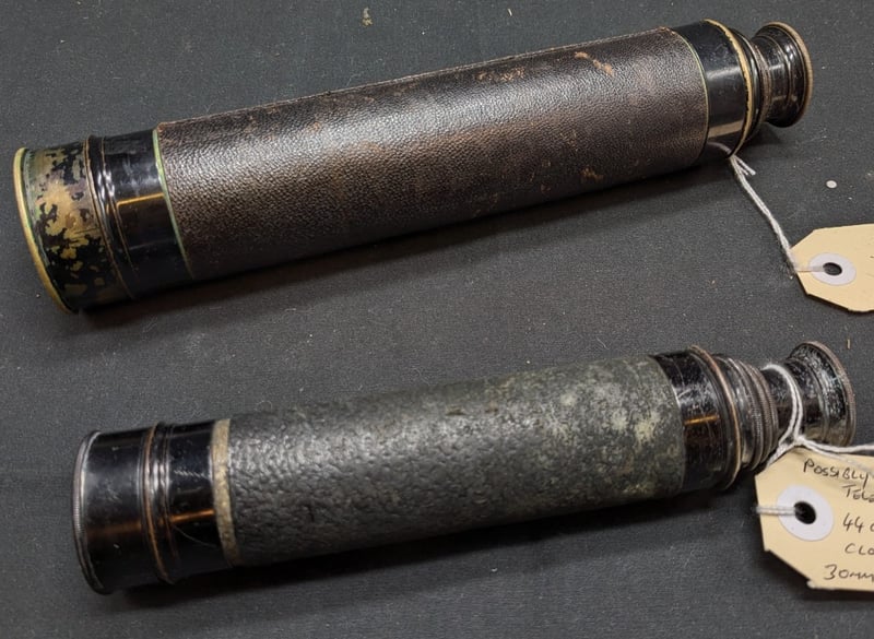 TWO BRASS TELESCOPE WITH LEATHER WRAP AND DETERIORATED OPTICS Telescope Dimensions Approx: 73Cm Long, 25Cm Closed - 44Cm Long, 18Cm Closed Includes 40Mm And 30Mm Lens Objective, With 25X And 15X Power Condition: Good - Refer To Images 584455+1