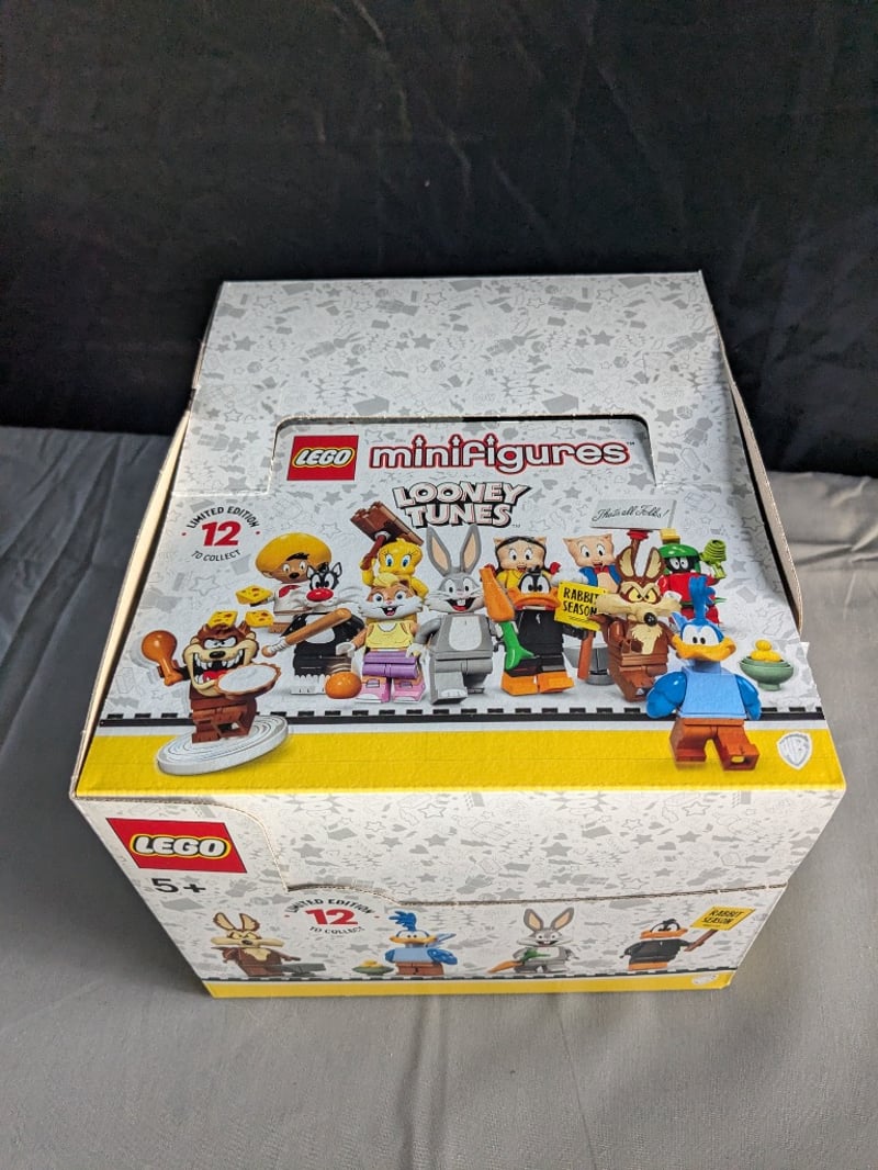 Lego Minifigures Looney Tunes Limited Edition Collectible Box Set Featuring Iconic Warner Bros. Characters Including Bugs Bunny, Daffy Duck, Porky Pig, And Others. Complete With Original Packaging And Yellow Base Band