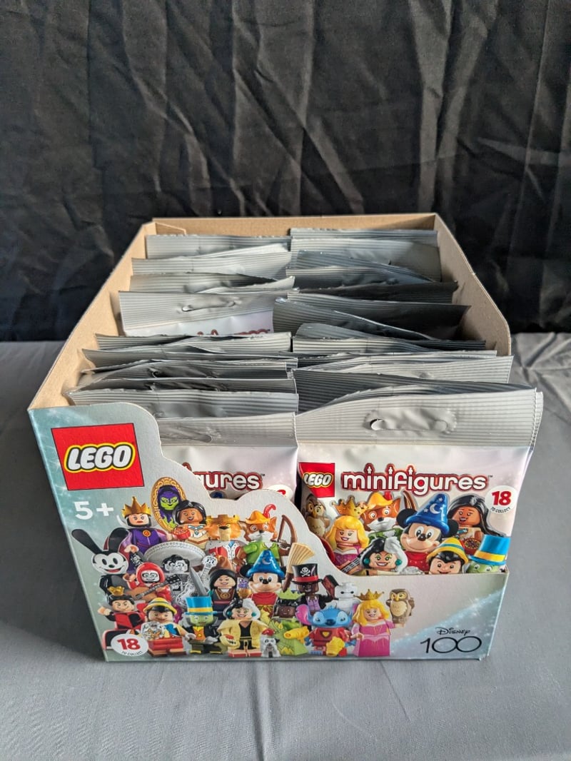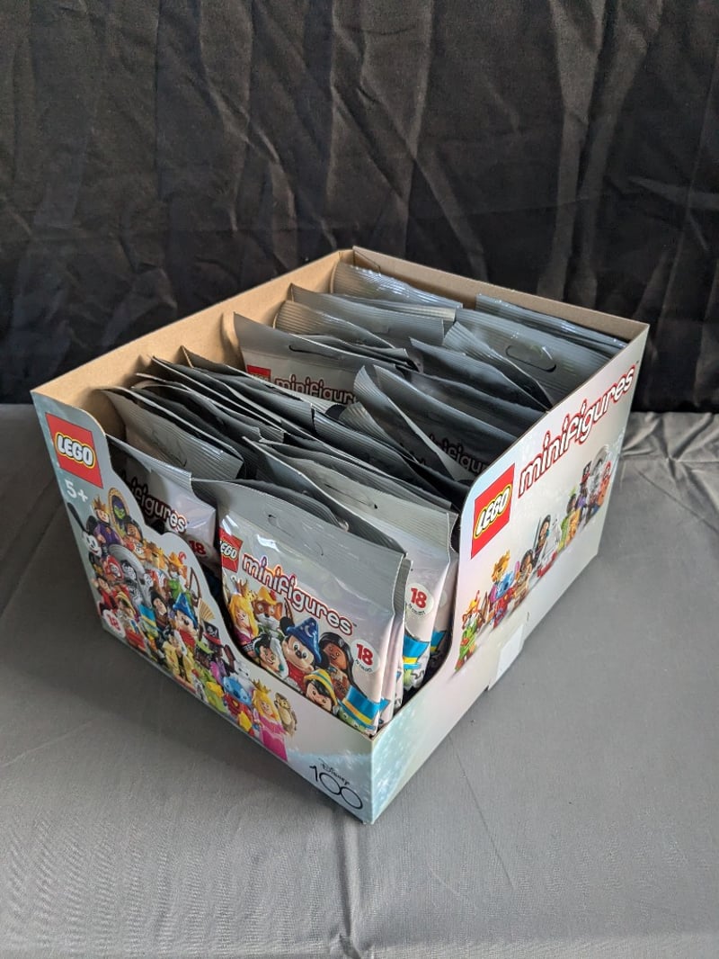 LEGO MINIFIGURES DISNEY 100 COLLECTIONComplete Sealed Box Containing Approximately 18 Lego Minifigures Disney 100 Anniversary Blind Bags. Original Retail Packaging With Cardboard Display Box Featuring Disney Character ArtworkCondition: Good - Refer To Images584572+117