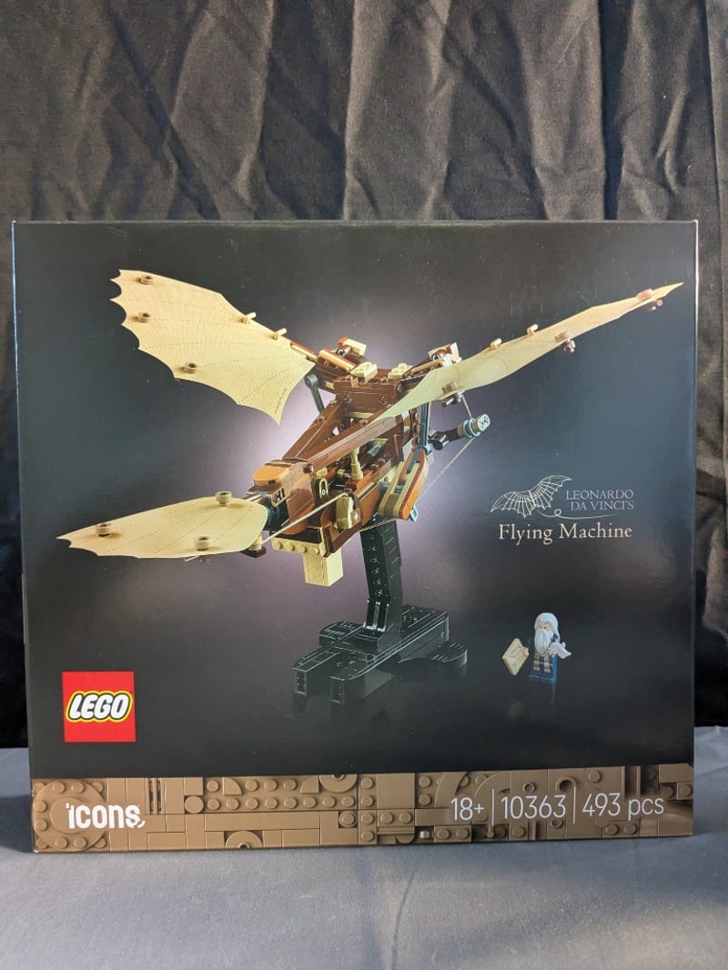 LEGO ICONS LEONARDO DA VINCI'S FLYING MACHINE SET 10363Lego Icons Leonardo Da Vinci'S Flying Machine (Set 10363) - A Sophisticated 493-Piece Construction Set Featuring An Intricate Replica Of Da Vinci'S Ornithopter Design. The Model Showcases Articulated Wooden-Tone Wings With Mechanical Detail, Mounted On A Display Stand With Included Minifigure. Part Of The Premium Lego Icons Collection For Ages 18+. Features Authentic Engineering Principles Inspired By Renaissance Sketches With Poseable Wing Mechanisms And Period-Accurate Aesthetic.Condition: Good - Refer To Images584572+145